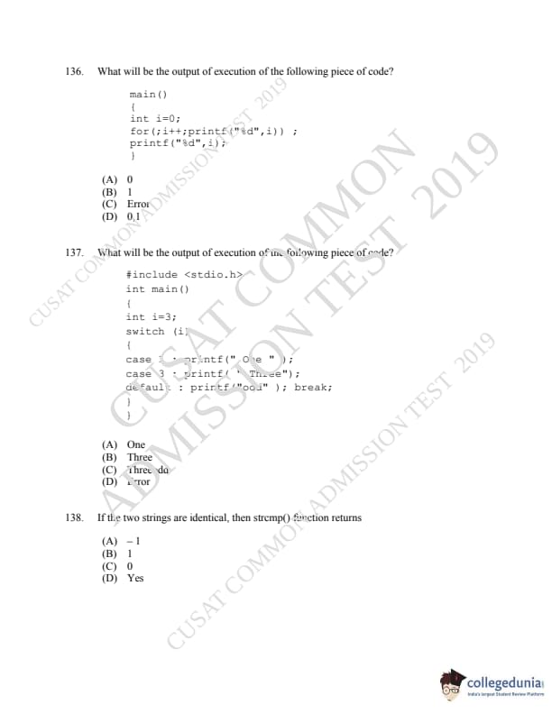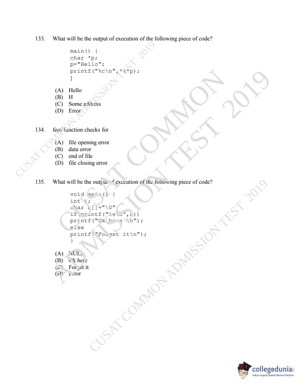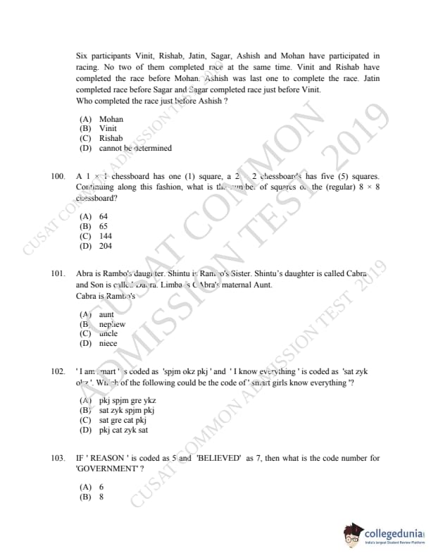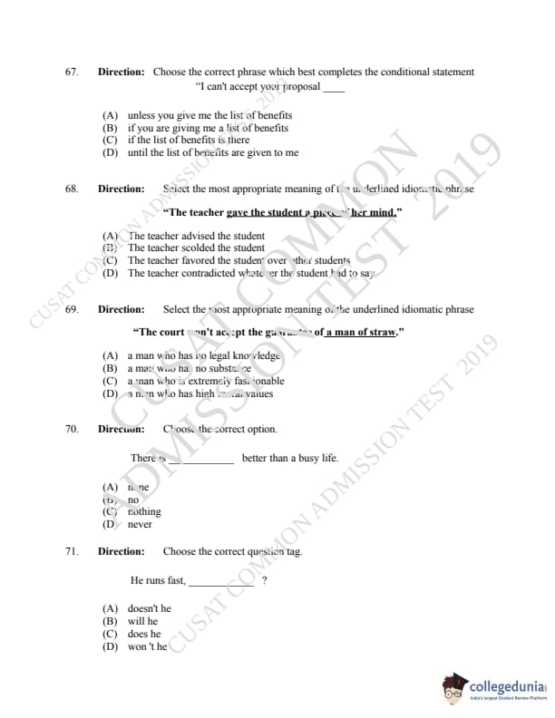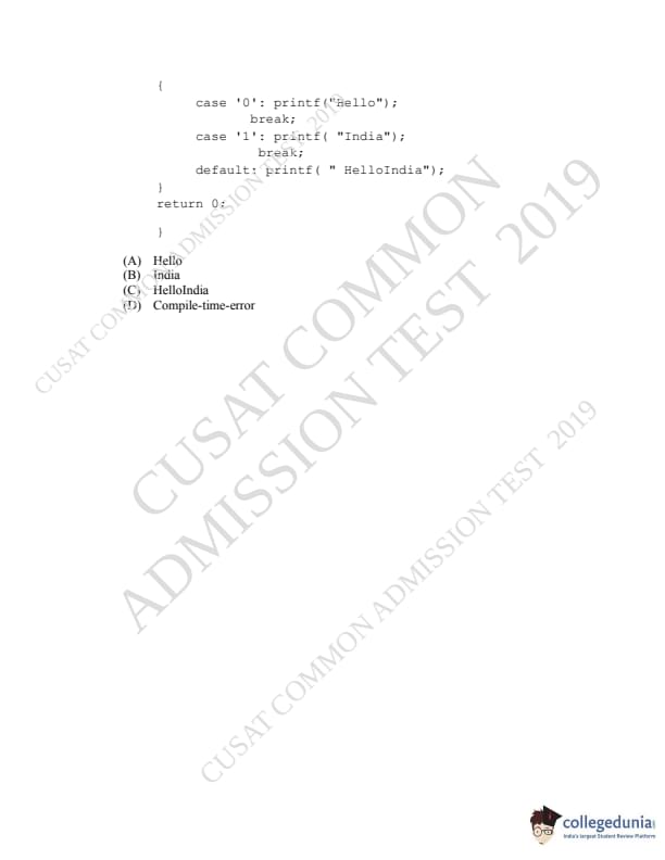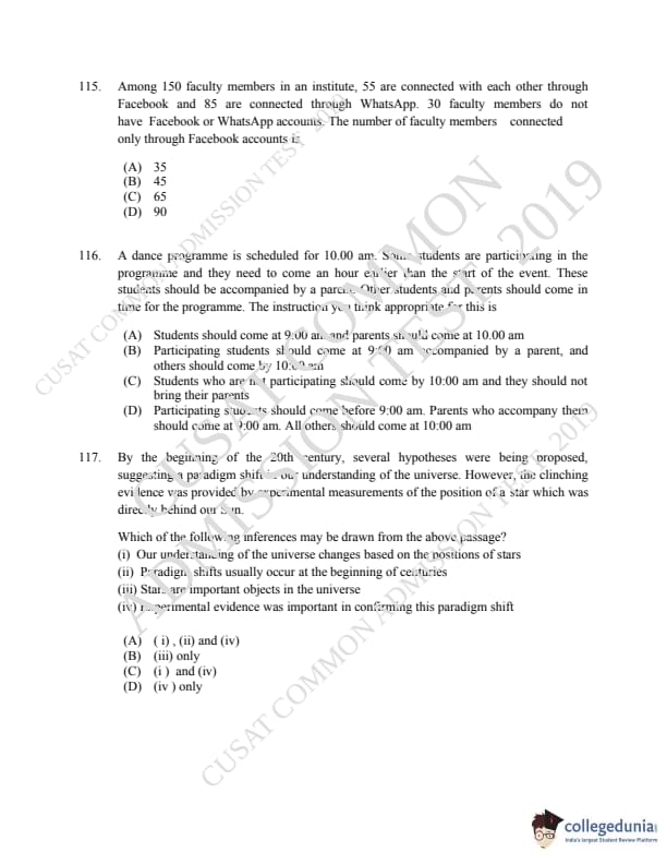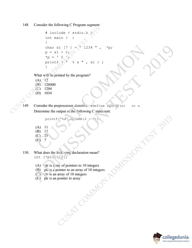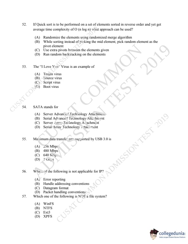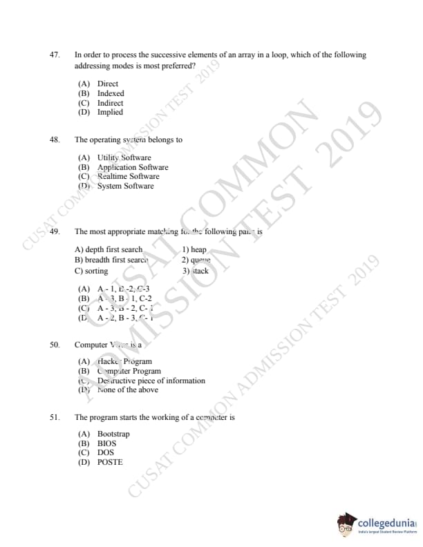 CUSAT CAT 2019 MVOC Mobile Phone Application Development Question paper with answer key pdf is available for download. The exam was successfully organized by Cochin University of Science & Technology. The question paper comprised a total of 150 questions.