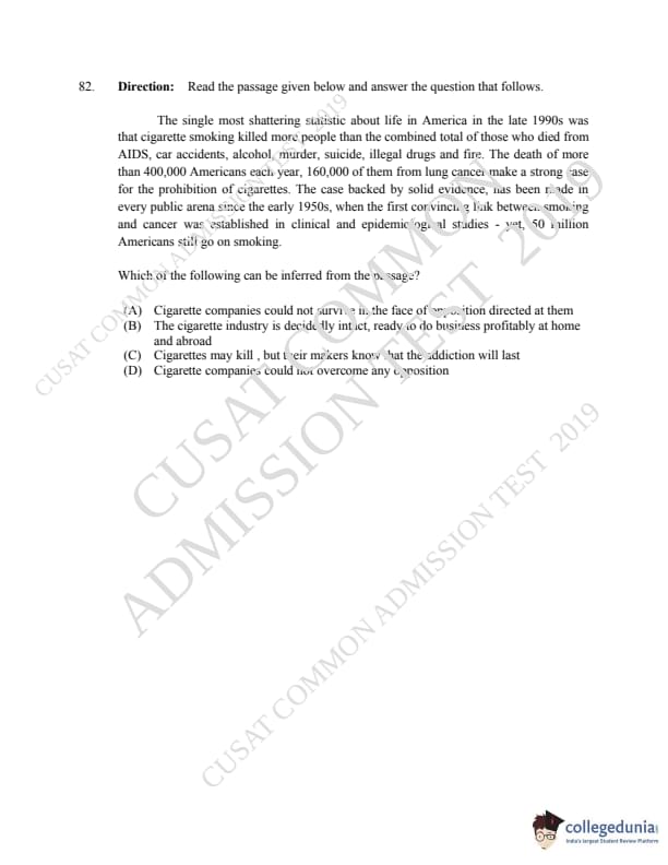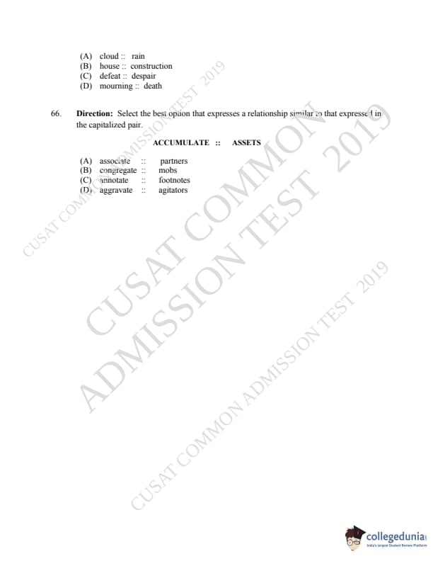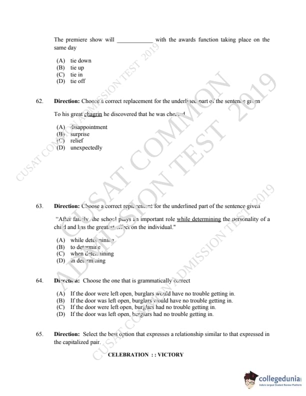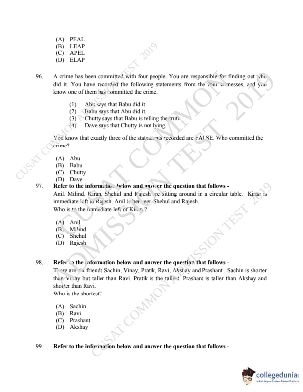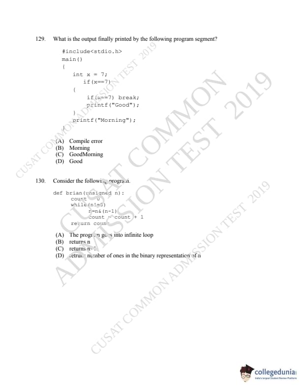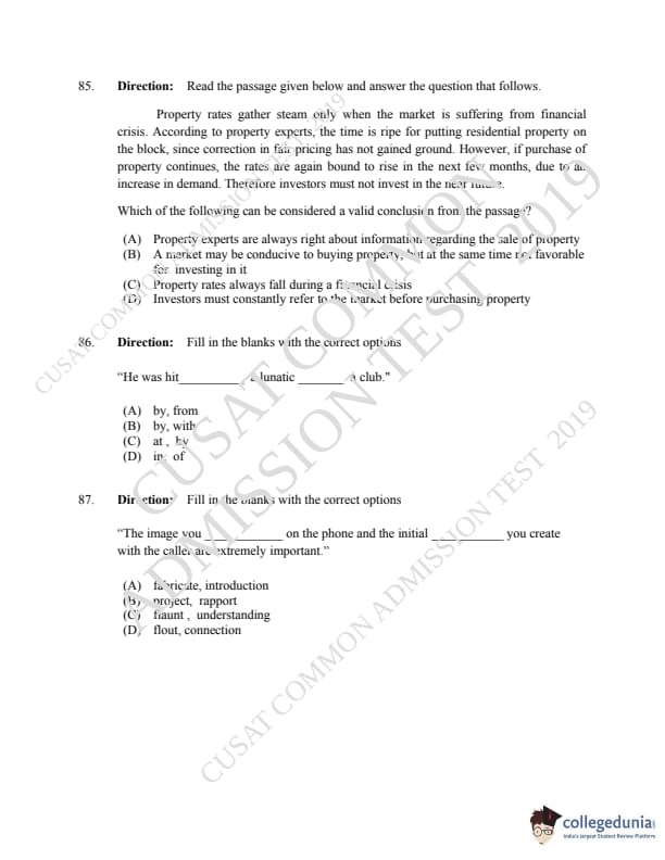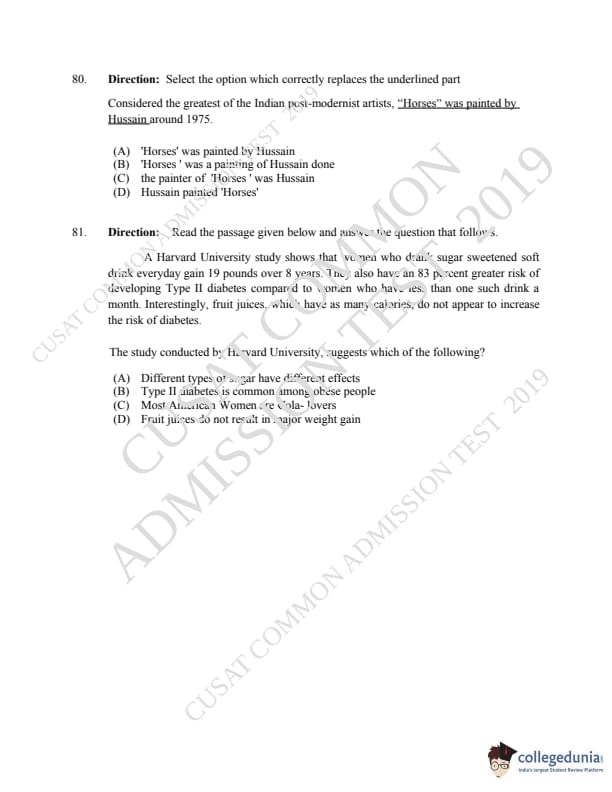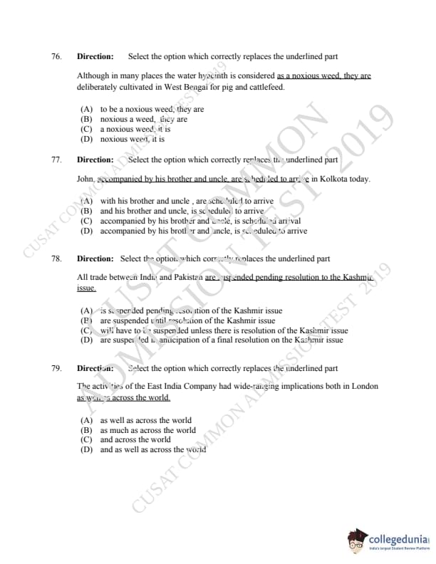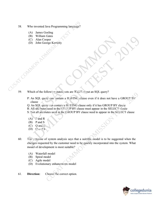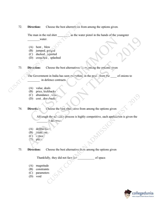 CUSAT CAT 2019 MVOC Mobile Phone Application Development Question paper with answer key pdf is available for download. The exam was successfully organized by Cochin University of Science & Technology. The question paper comprised a total of 150 questions.