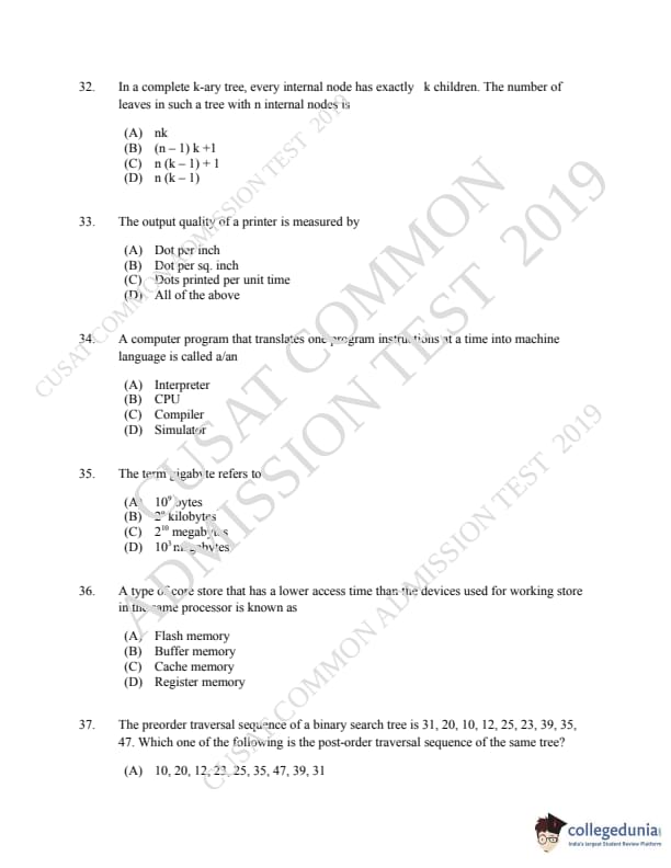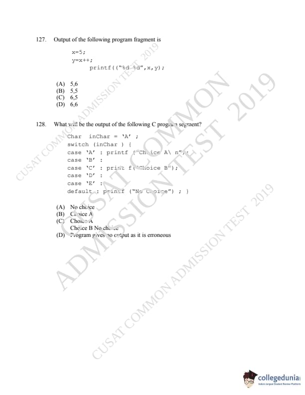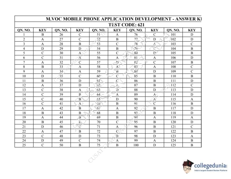 | CUSAT CAT 2019 MVOC Mobile Phone Application Development Question Paper PDF | CUSAT CAT 2019 MVOC Mobile Phone Application Development Answer Key PDF |