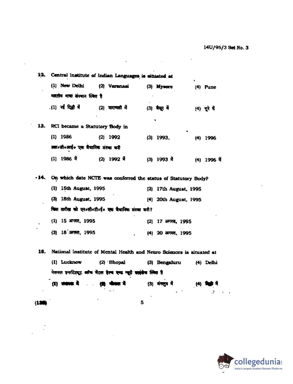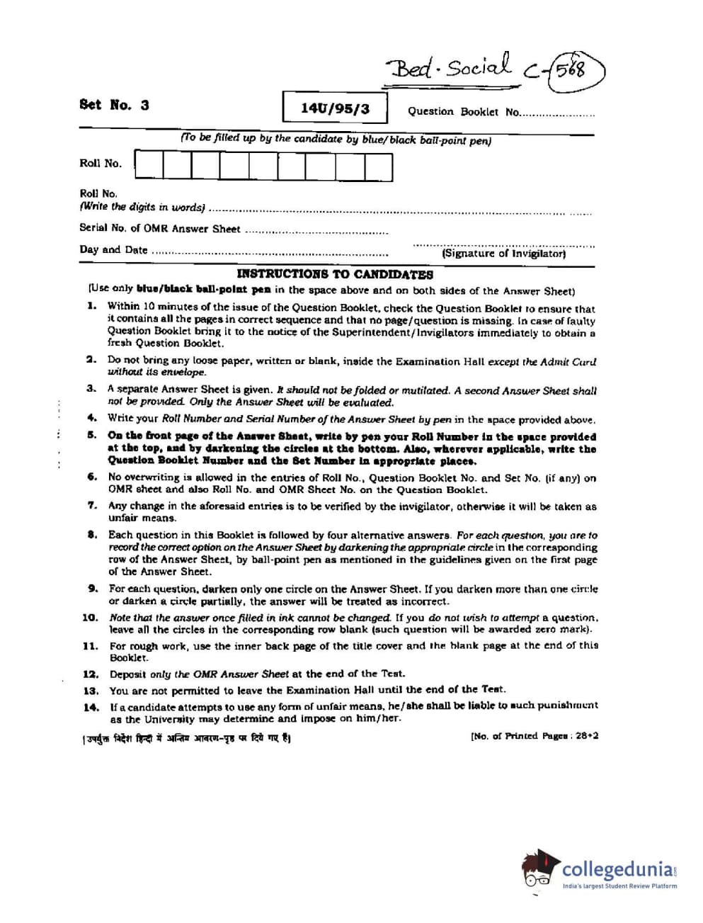 BHU UET 2014 B.Ed Humanities and Social Science Set-3 Question paper with answer key pdf is available for download. The exam was successfully organized by Banaras Hindu University (BHU). The question paper comprised a total of 100 questions.