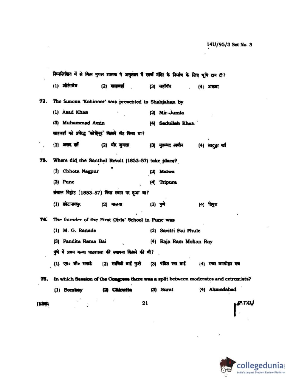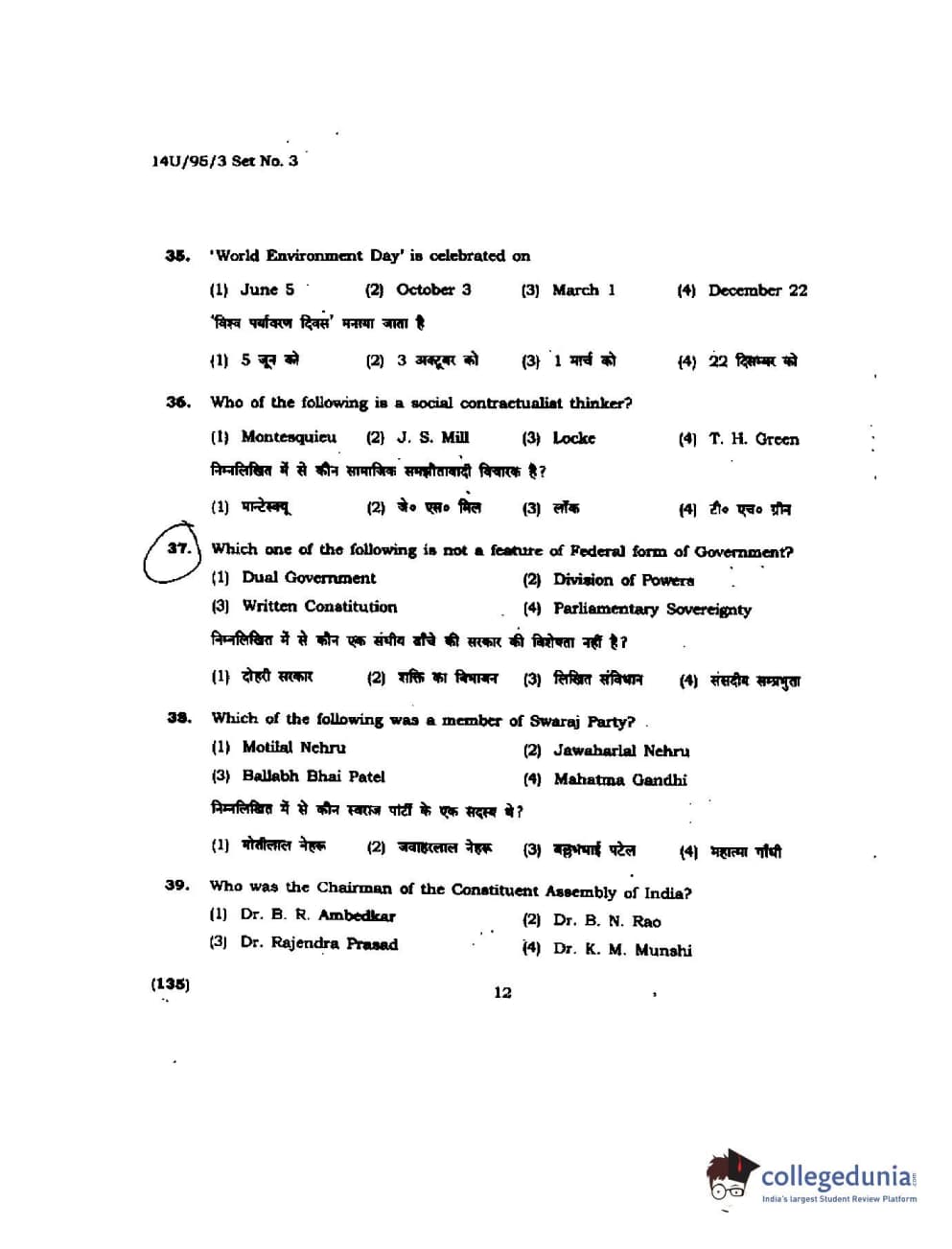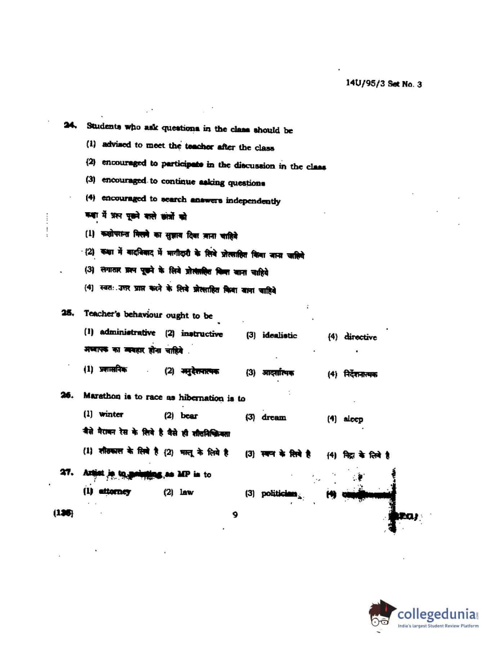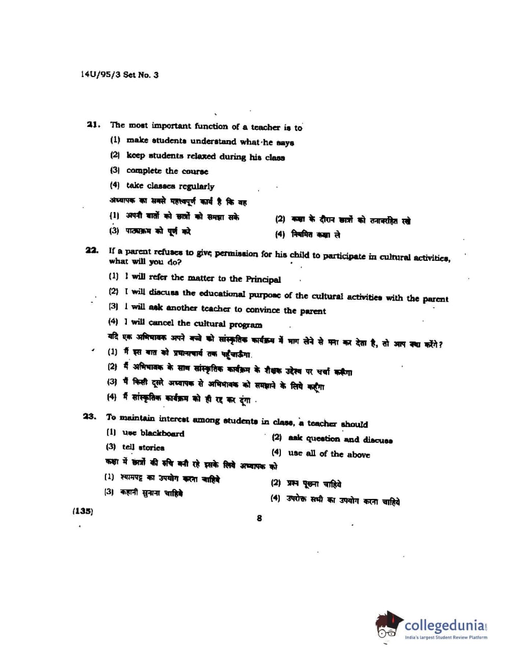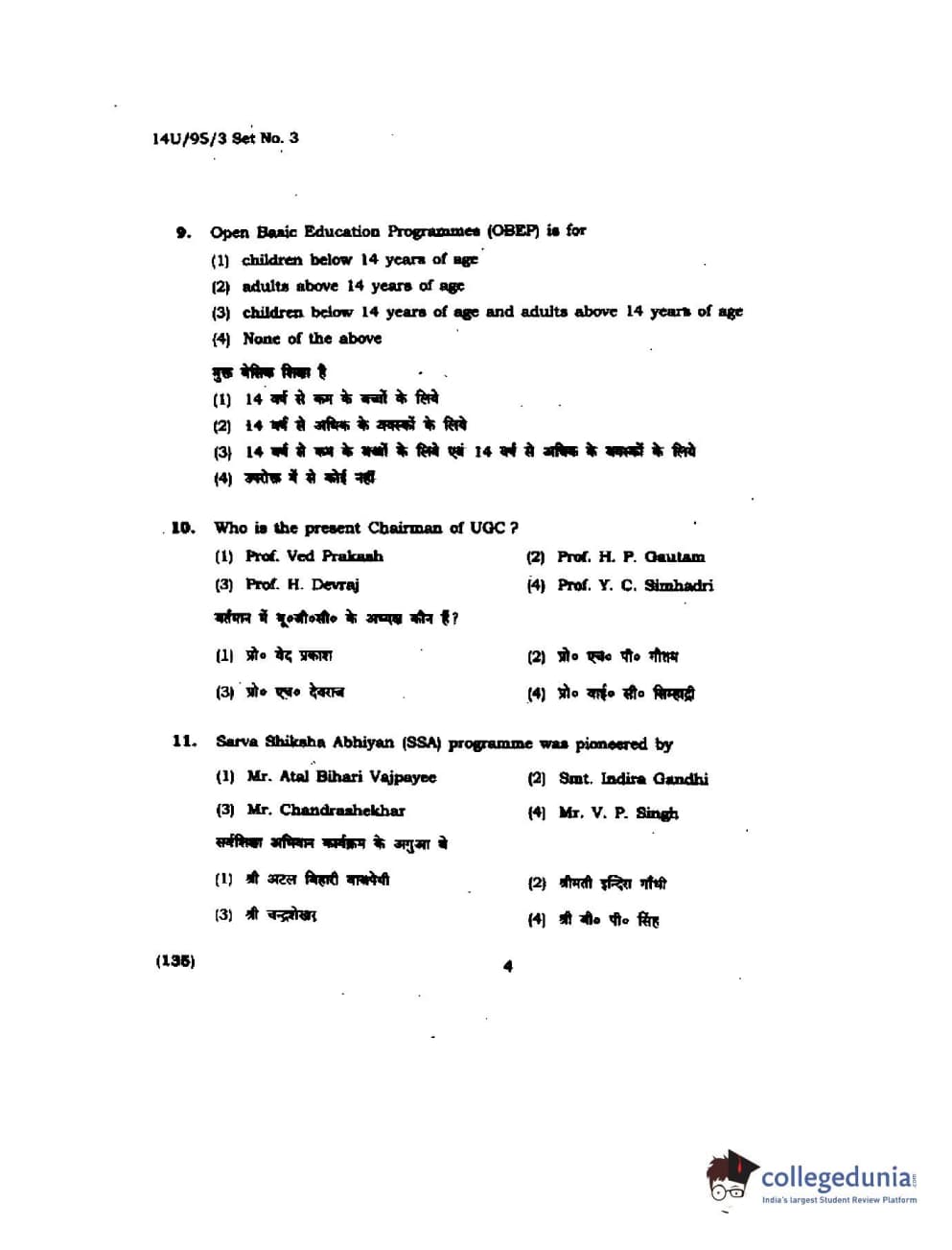 BHU UET 2014 B.Ed Humanities and Social Science Set-3 Question Paper with Answer Key PDFs