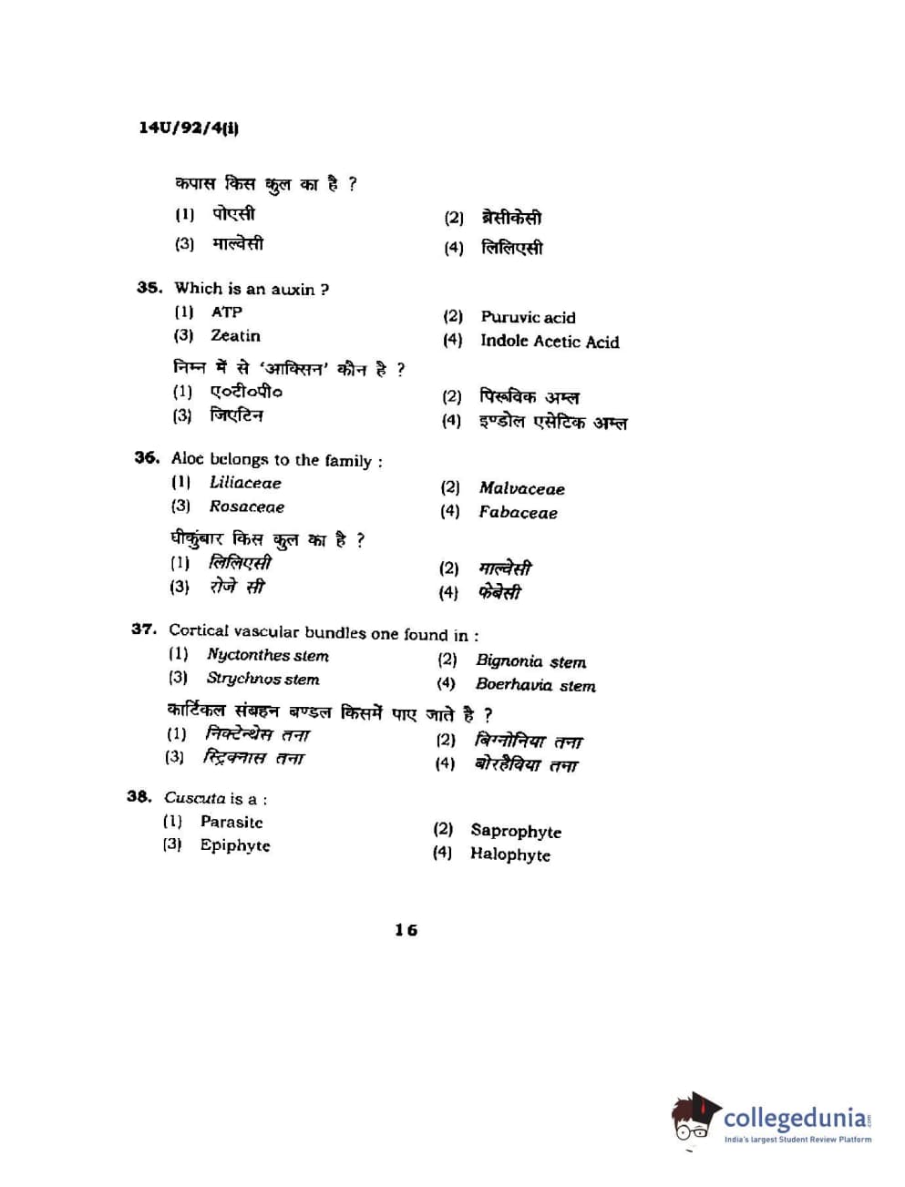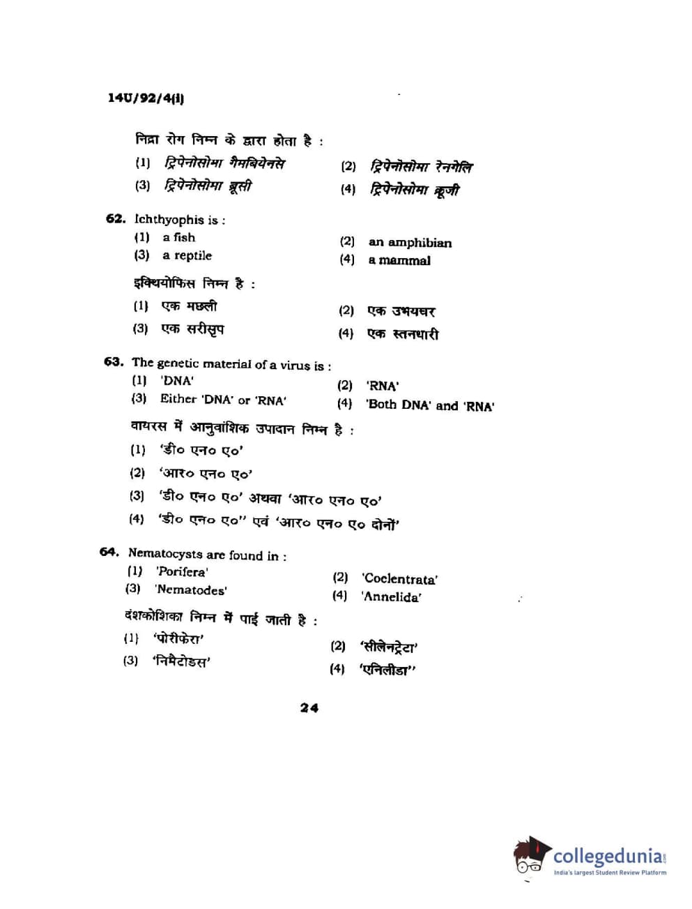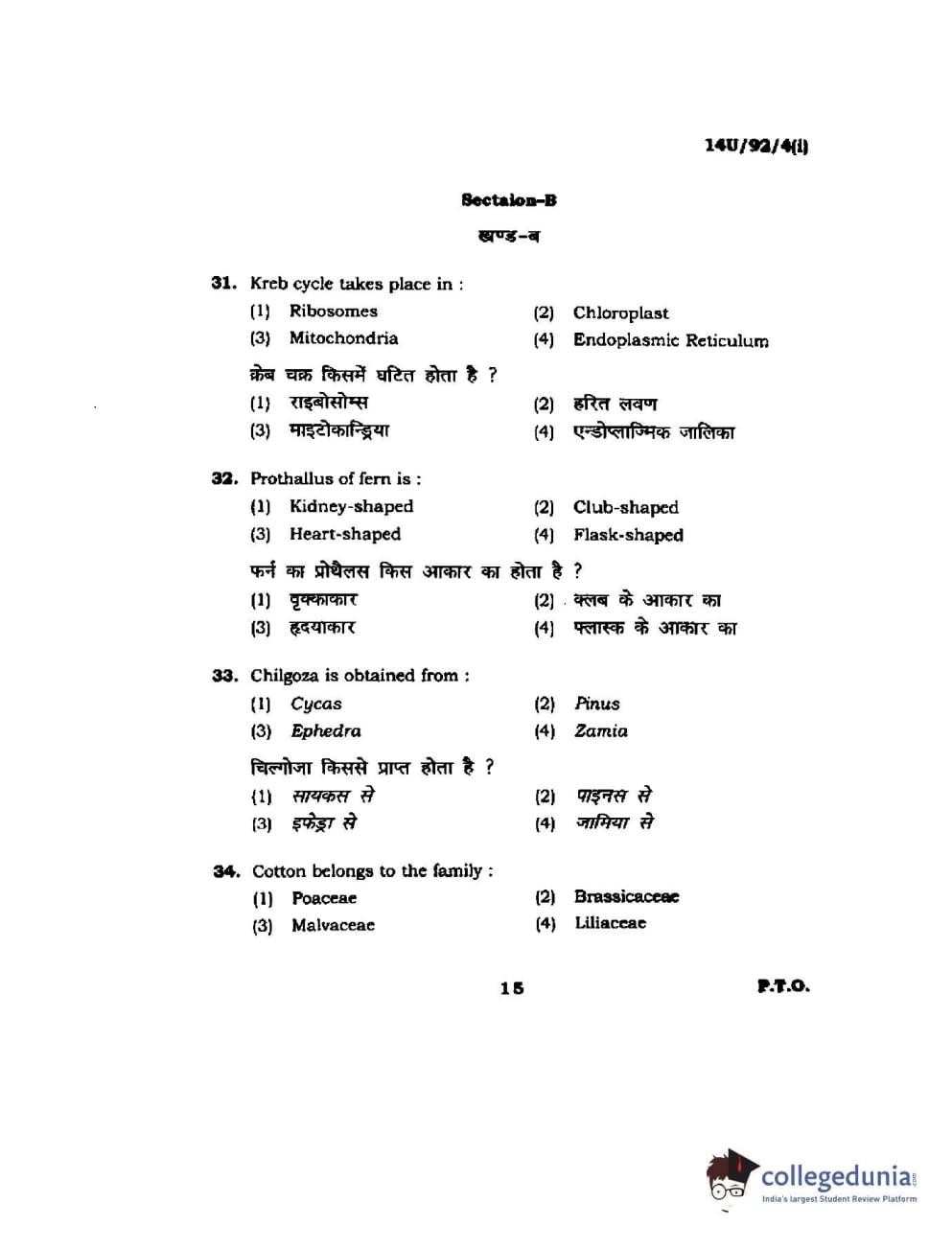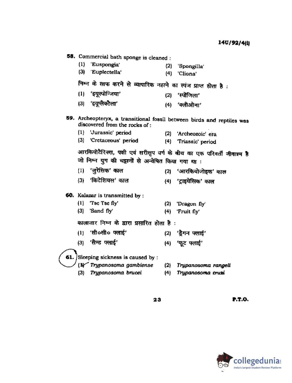 BHU UET 2014 B.Ed Life Science (Set-1) Question Paper with Answer Key PDFs