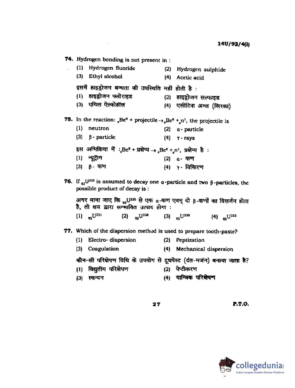 BHU UET 2014 B.Ed Life Science (Set-1) Question paper with answer key pdf is available for download. The exam was successfully organized by Banaras Hindu University (BHU). The question paper comprised a total of 100 questions.