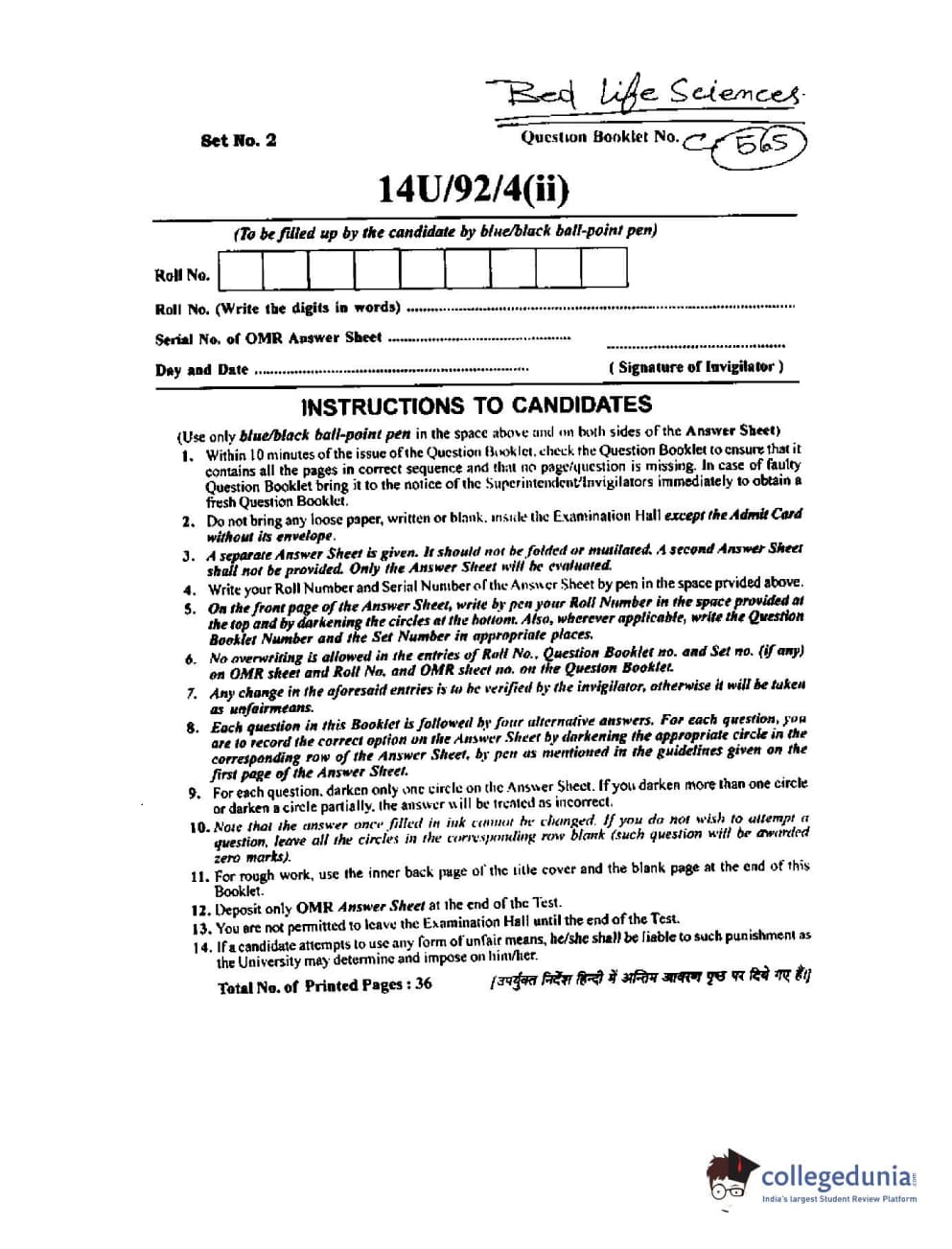 BHU UET 2014 B.Ed Life Science (Set-2) Question paper with answer key pdf is available for download. The exam was successfully organized by Banaras Hindu University (BHU). The question paper comprised a total of 100 questions.