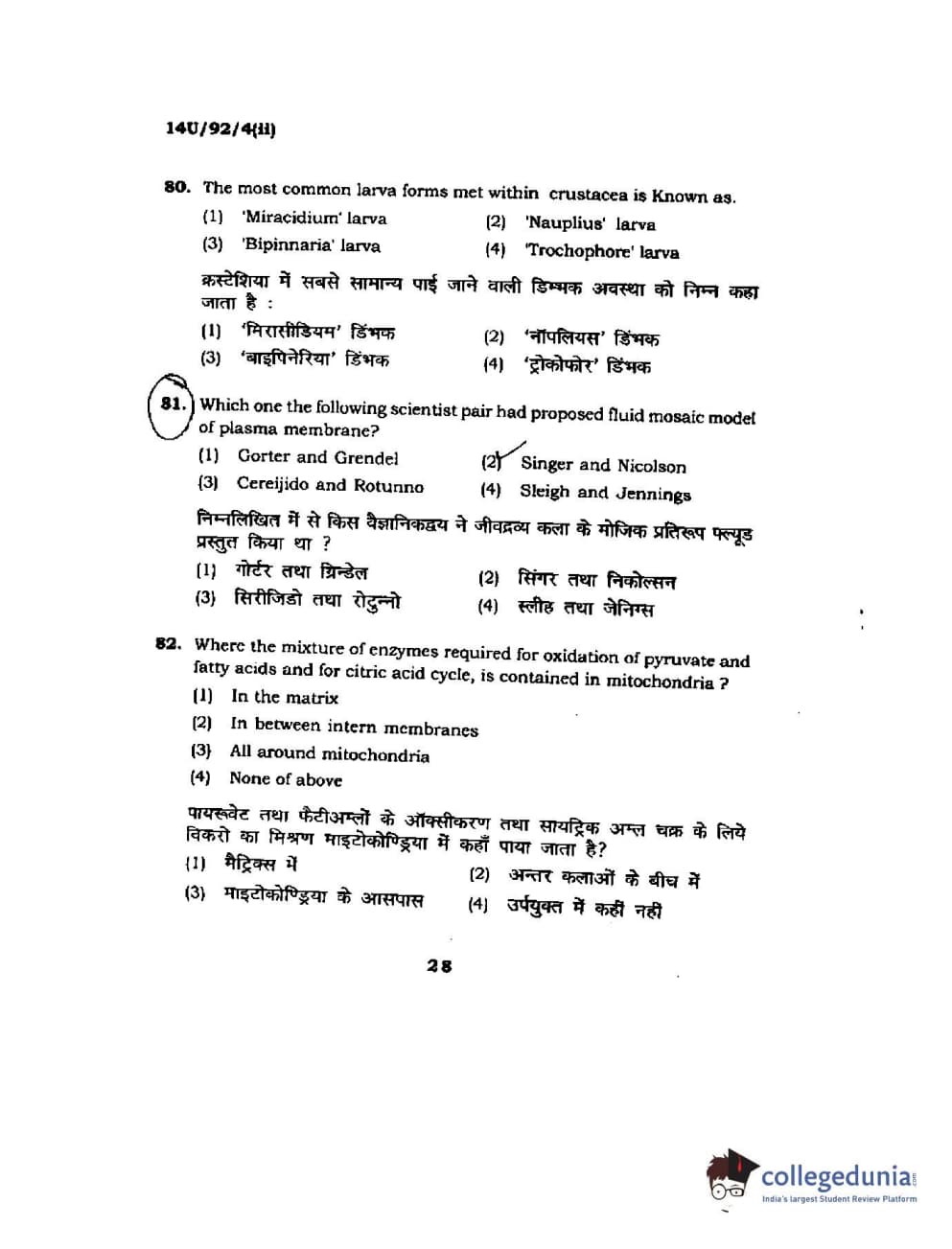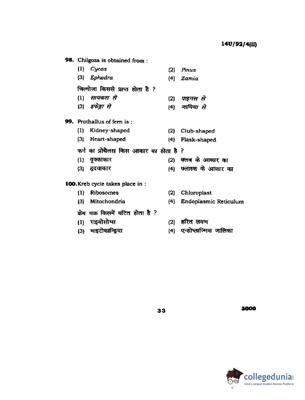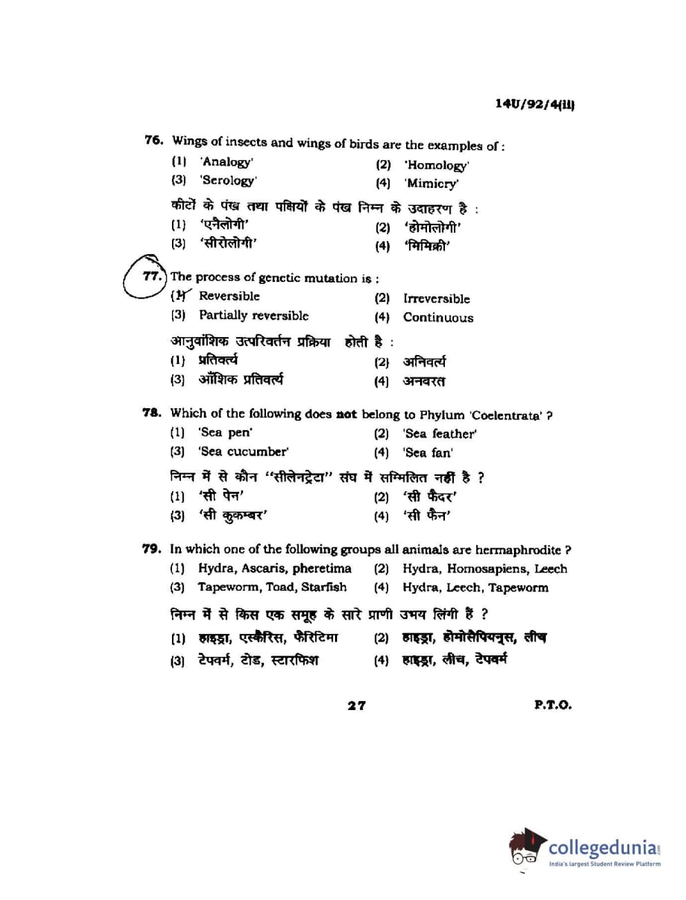BHU UET 2014 B.Ed Life Science (Set-2) Question Paper with Answer Key PDFs