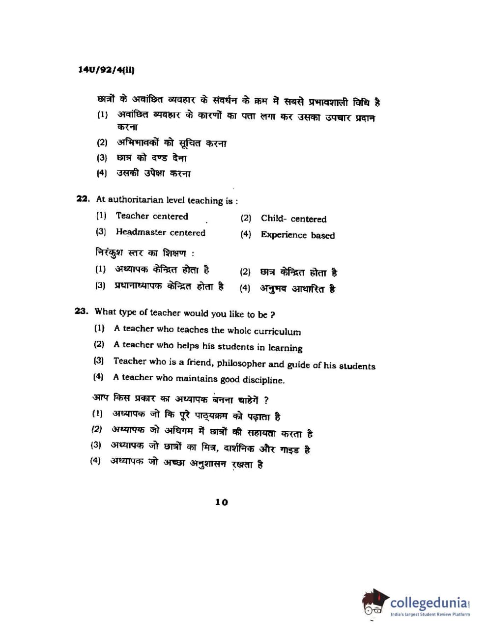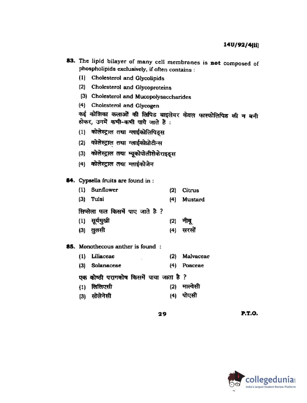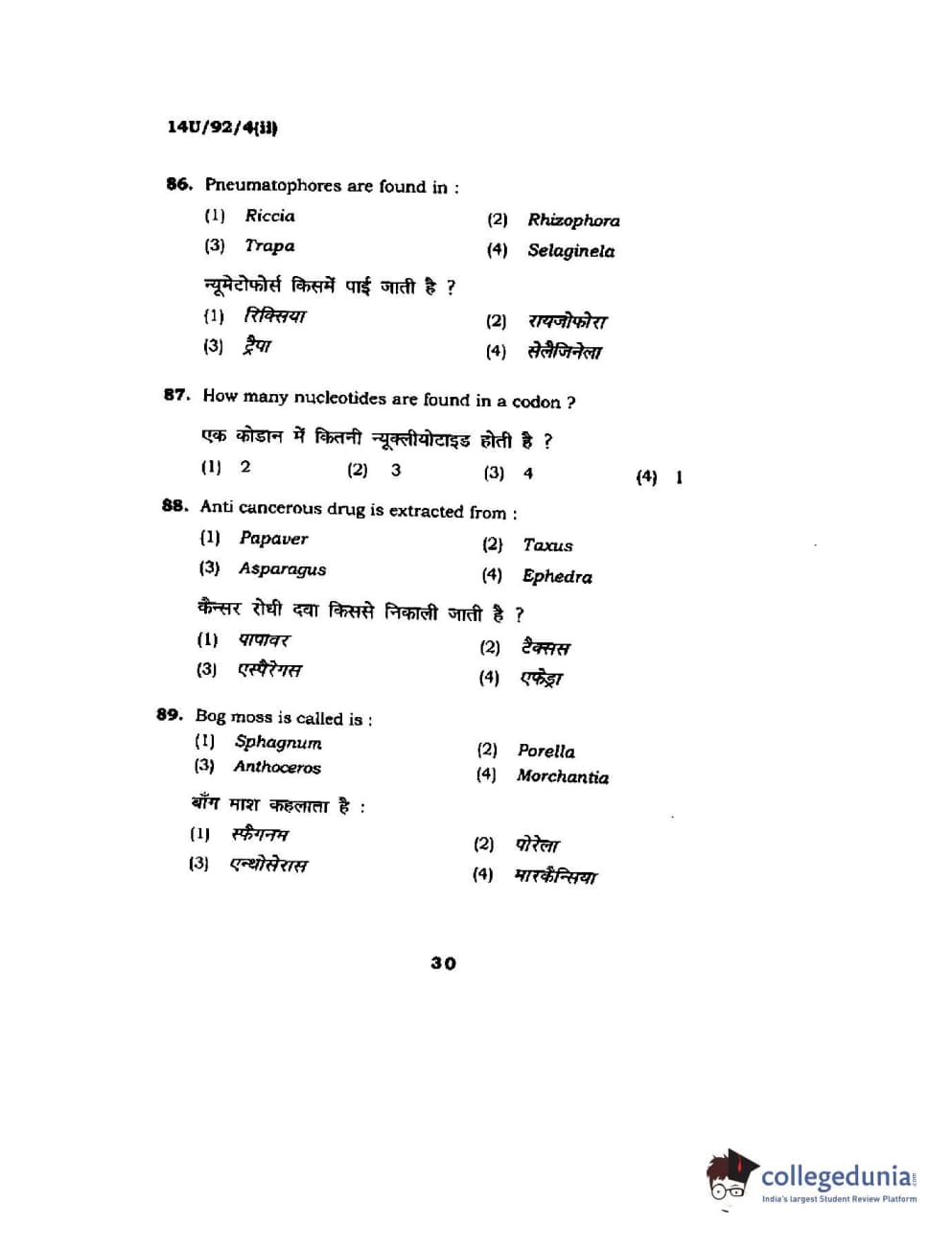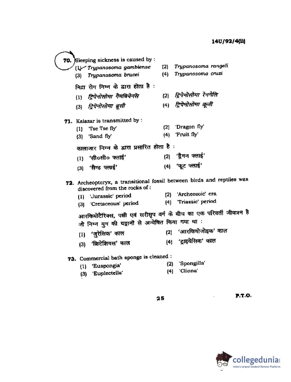 BHU UET 2014 B.Ed Life Science (Set-2) Question Paper with Answer Key PDFs