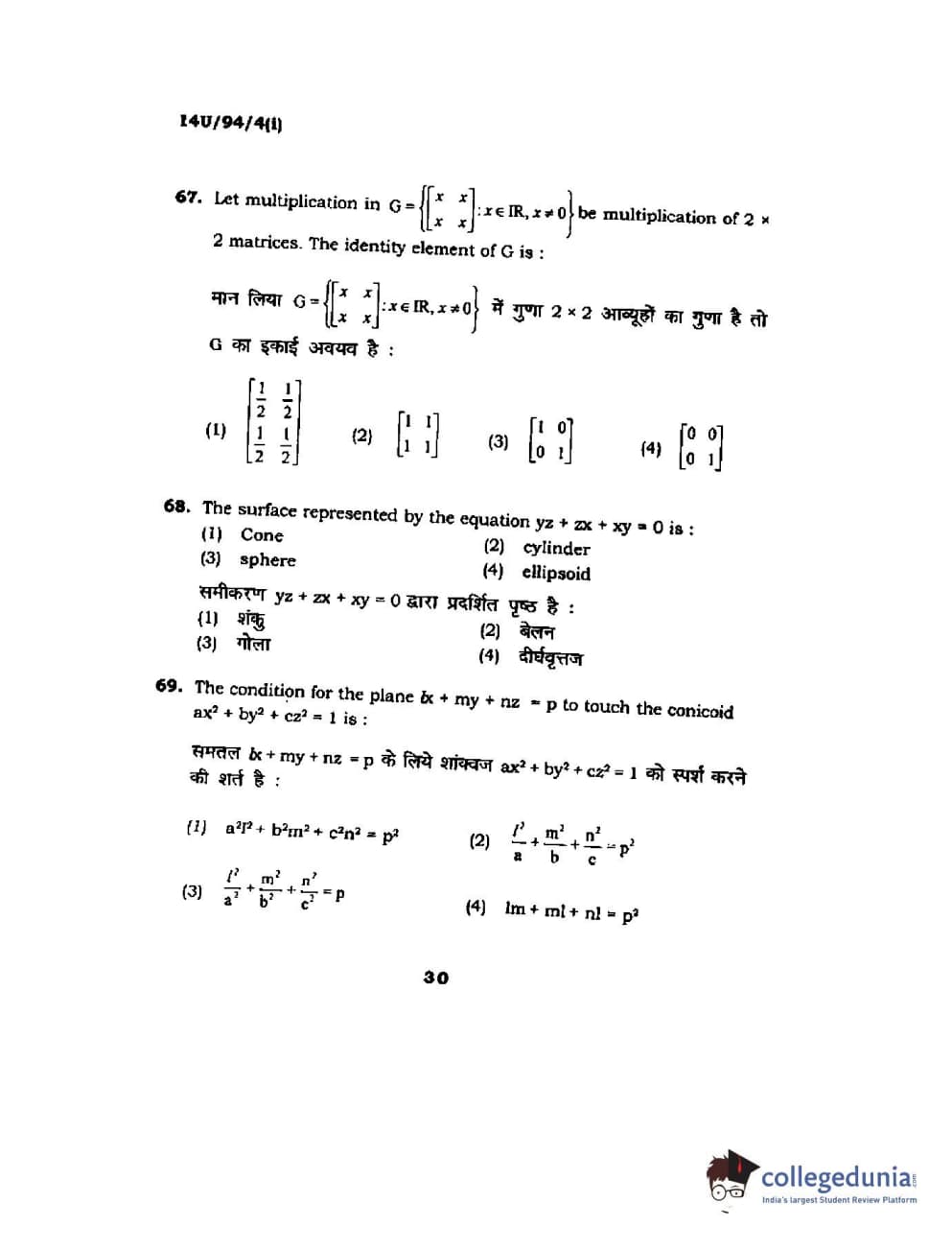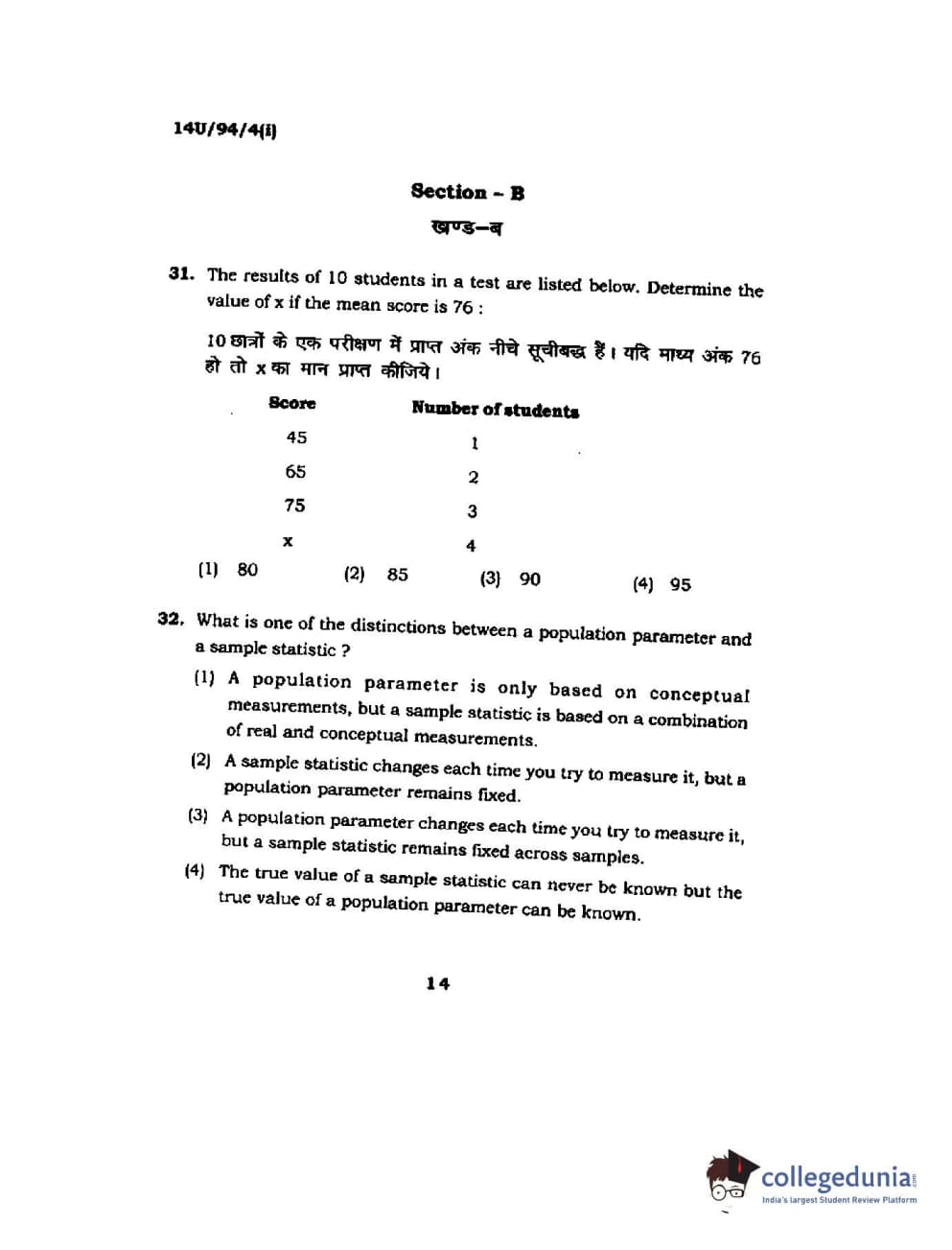 BHU UET 2014 B.Ed Mathematics (Set-1) Question Paper with Answer Key PDFs