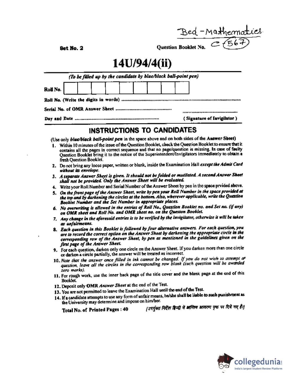 | BHU UET 2014 B.Ed Mathematics (Set-2) Question Paper PDF | BHU UET 2014 B.Ed Mathematics (Set-2) Answer Key PDF |