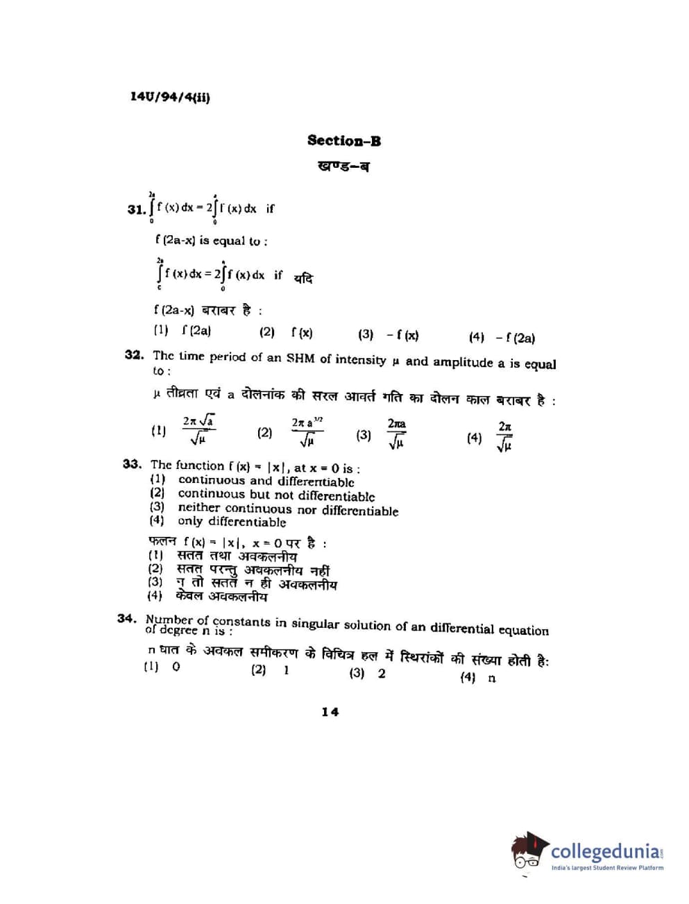 BHU UET 2014 B.Ed Mathematics (Set-2) Question Paper with Answer Key PDFs