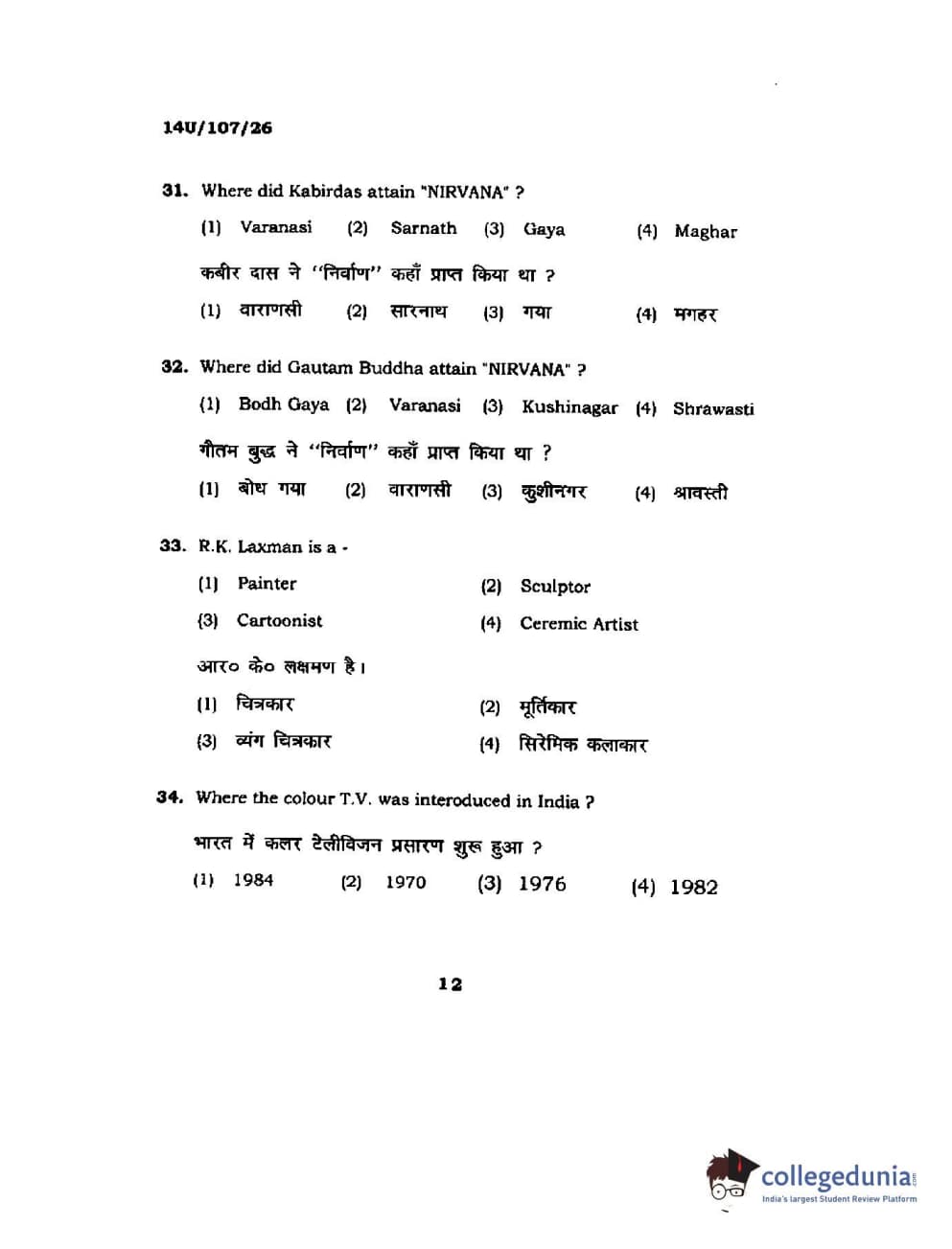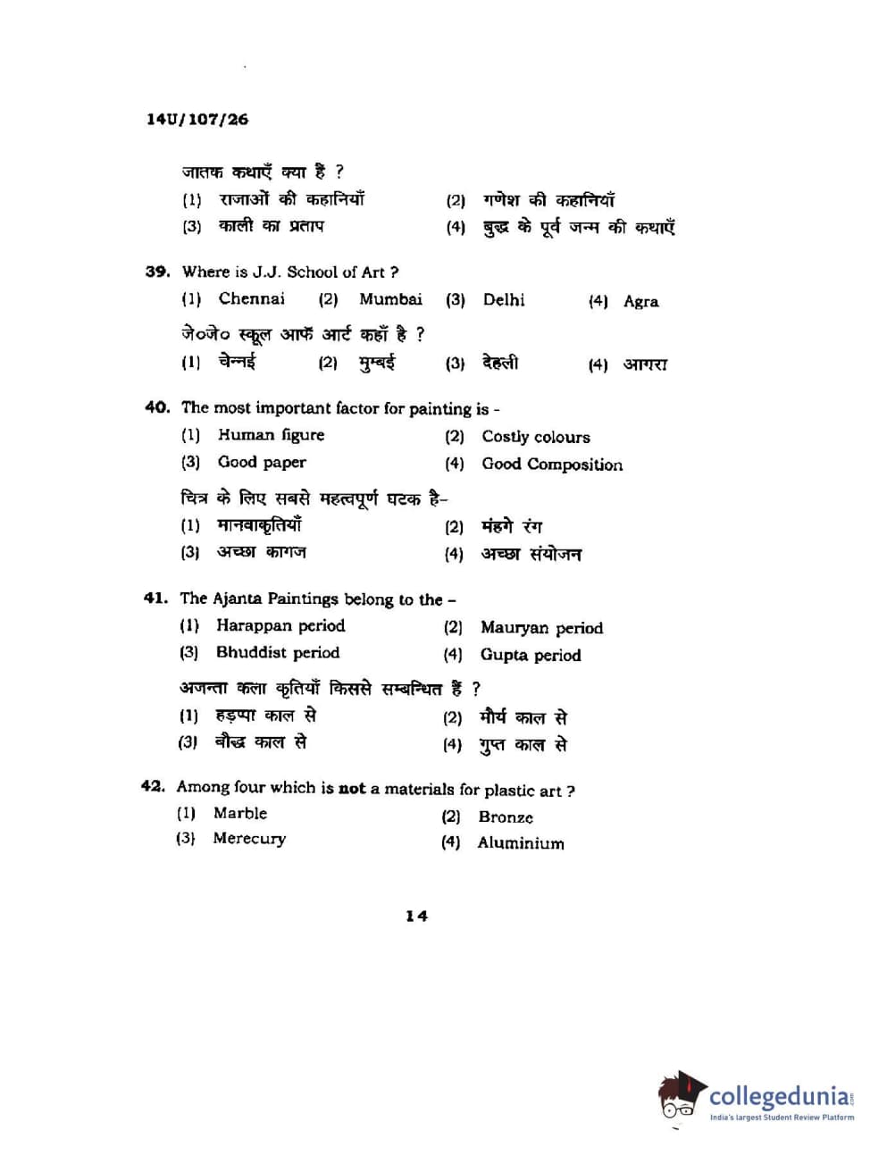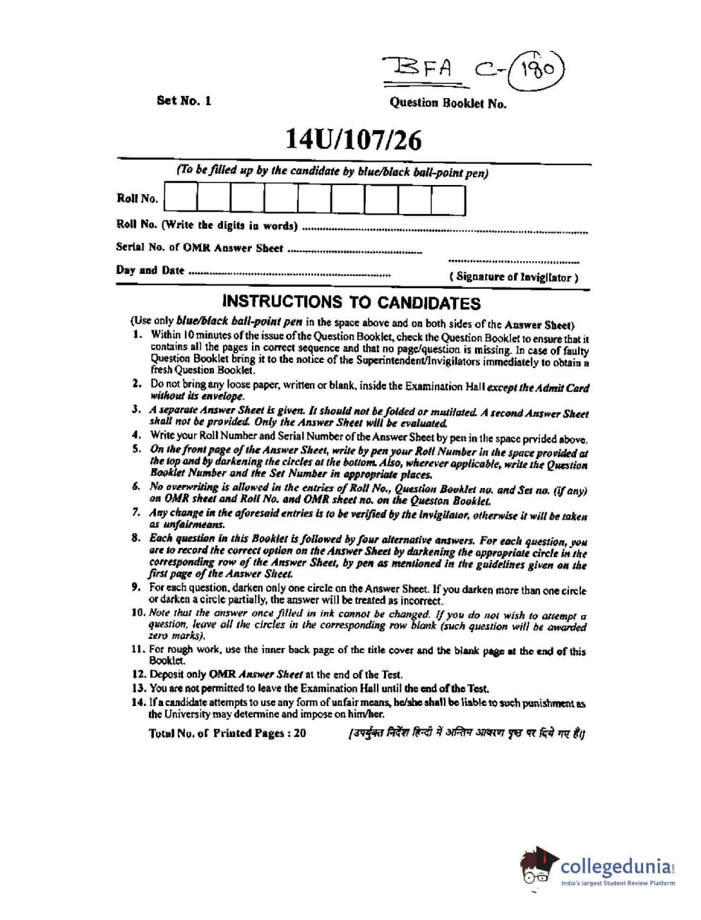 BHU UET 2014 B.F.A Question Paper with Answer Key PDFs