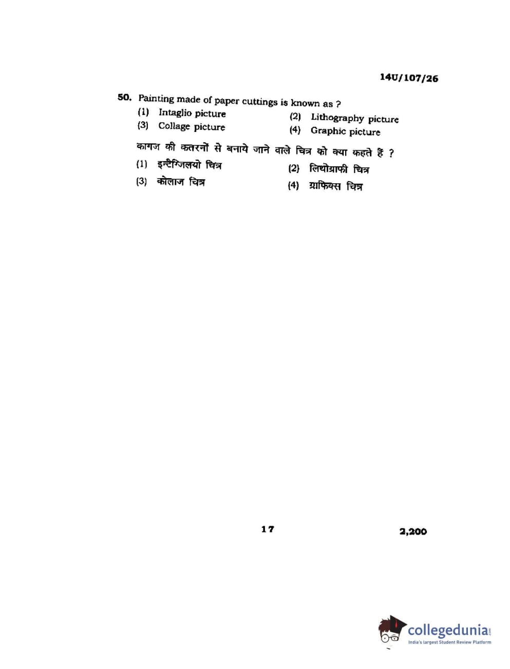 BHU UET 2014 B.F.A Question paper with answer key pdf is available for download. The exam was successfully organized by Banaras Hindu University (BHU). The question paper comprised a total of 50 questions.