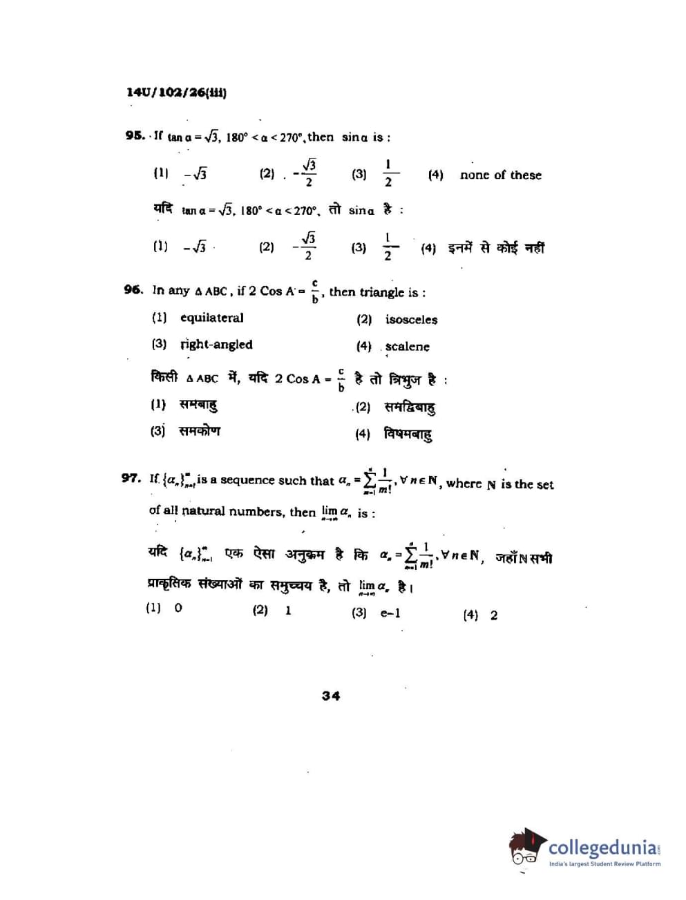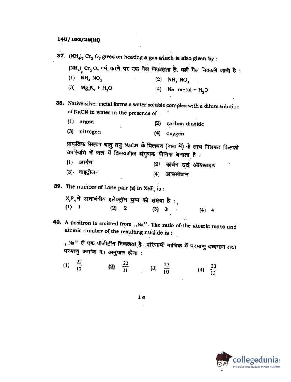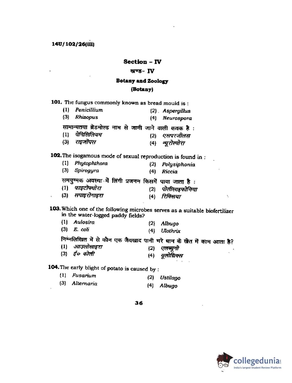 BHU UET 2014 B.Sc Ag (Set-3) Question Paper with Answer Key PDFs