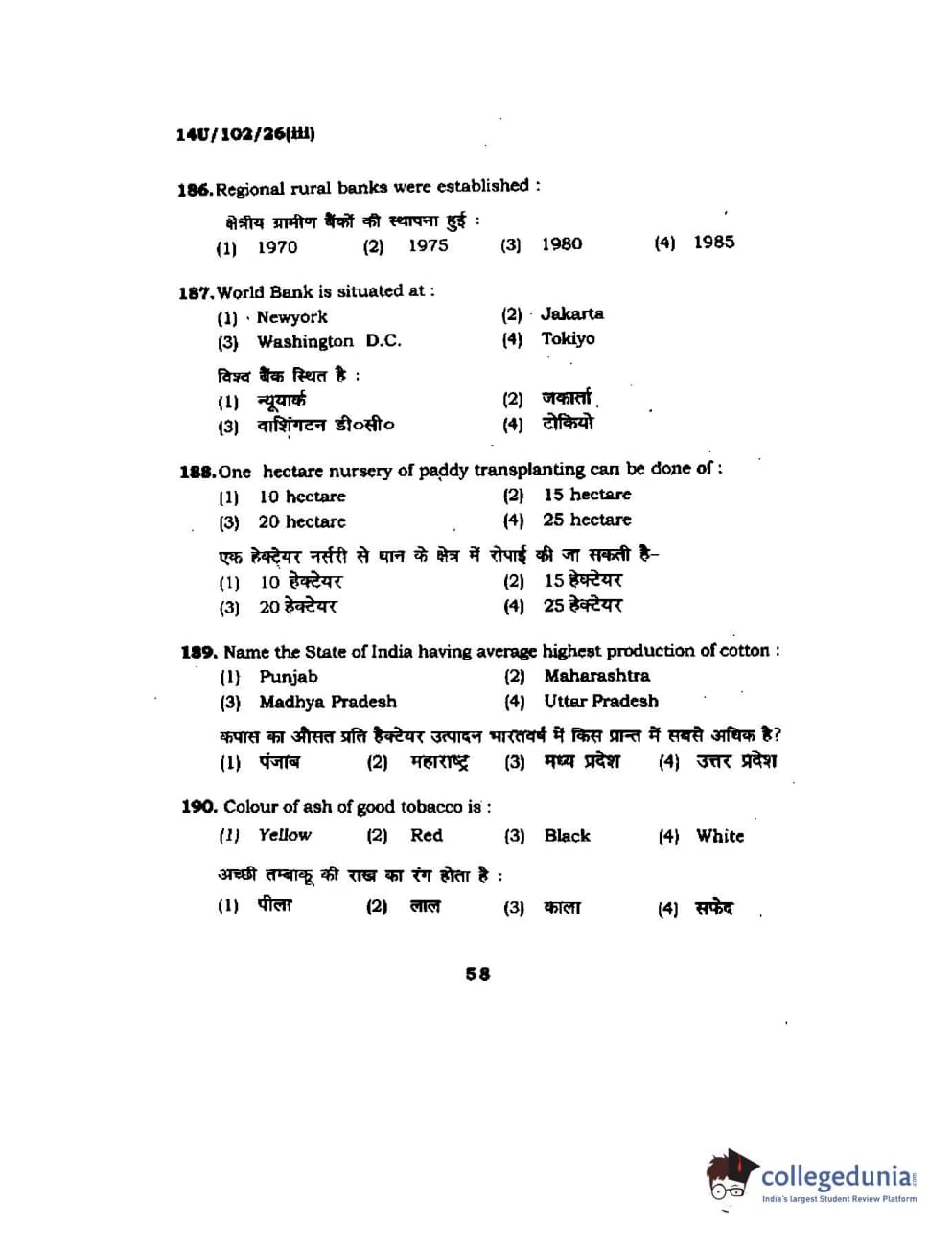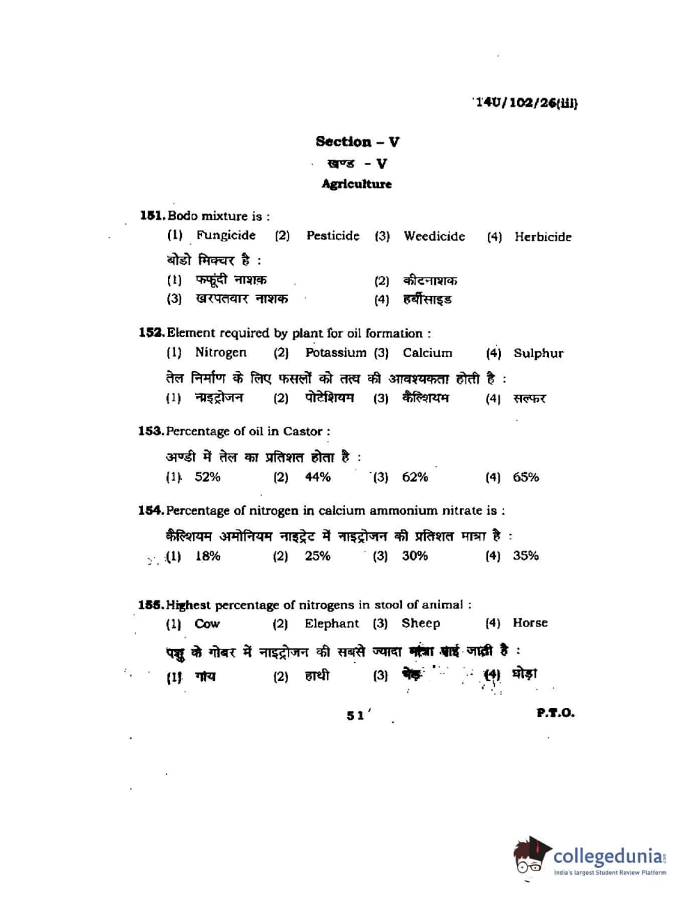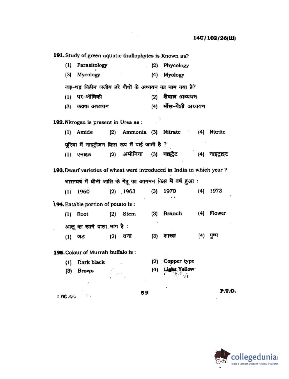BHU UET 2014 B.Sc Ag (Set-3) Question paper with answer key pdf is available for download. The exam was successfully organized by Banaras Hindu University (BHU). The question paper comprised a total of 200 questions.