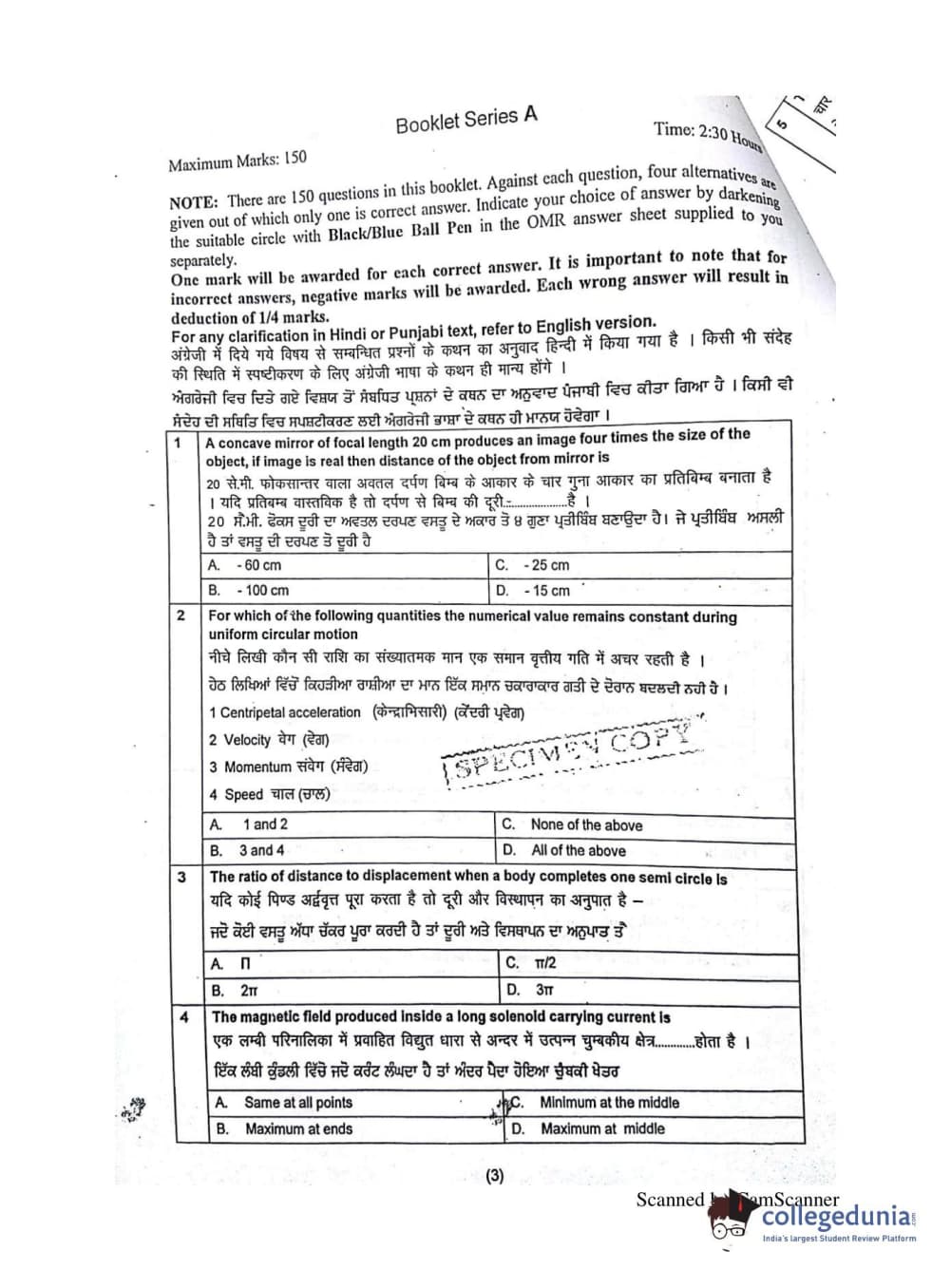 SLIET SET 2015 SET -1(A) Question paper with answer key pdf conducted on April 26, 2015 is available for download. The exam was successfully organized by Sant Lonogowal Institute. The question paper comprised a total of 150 questions.