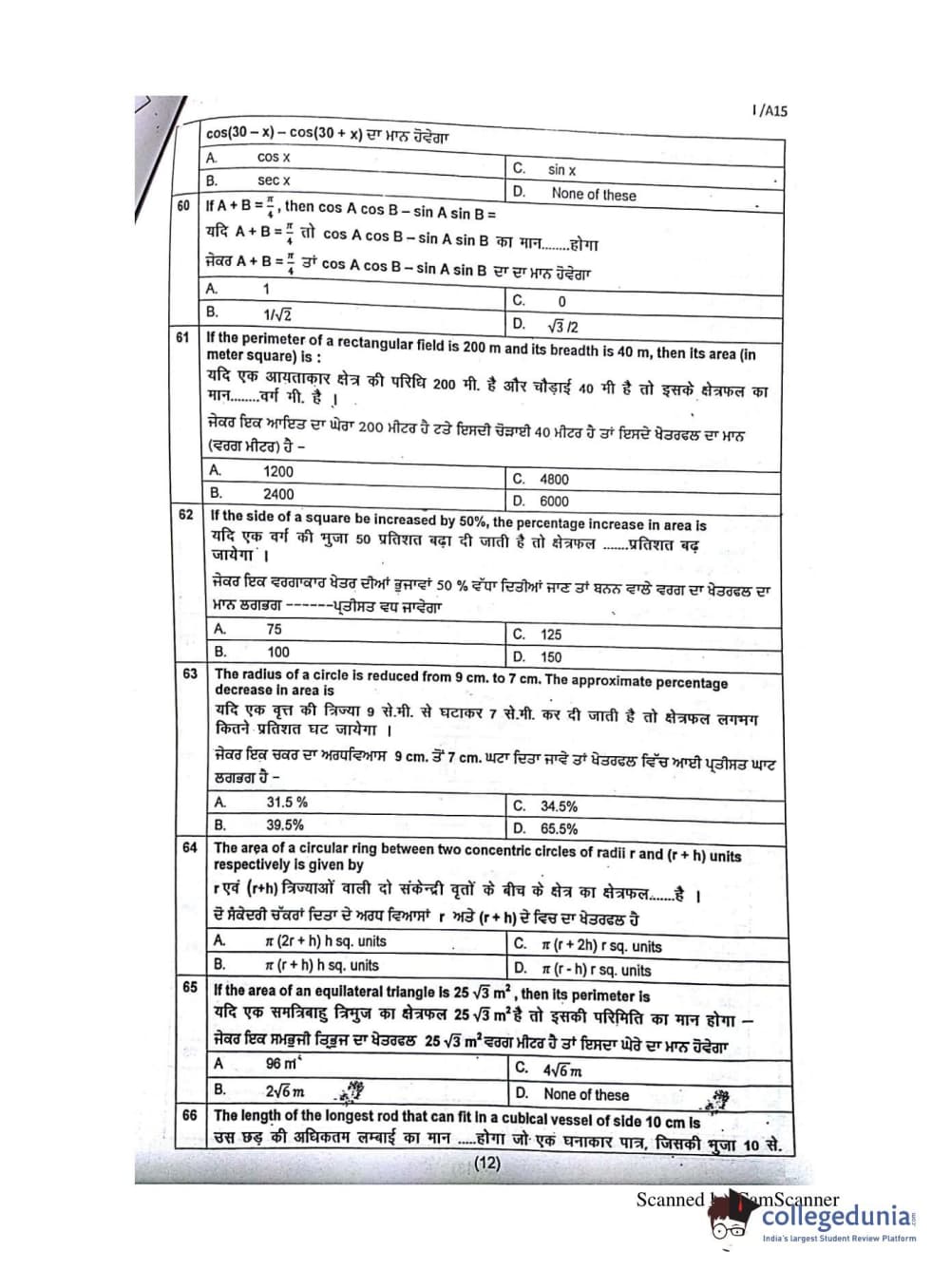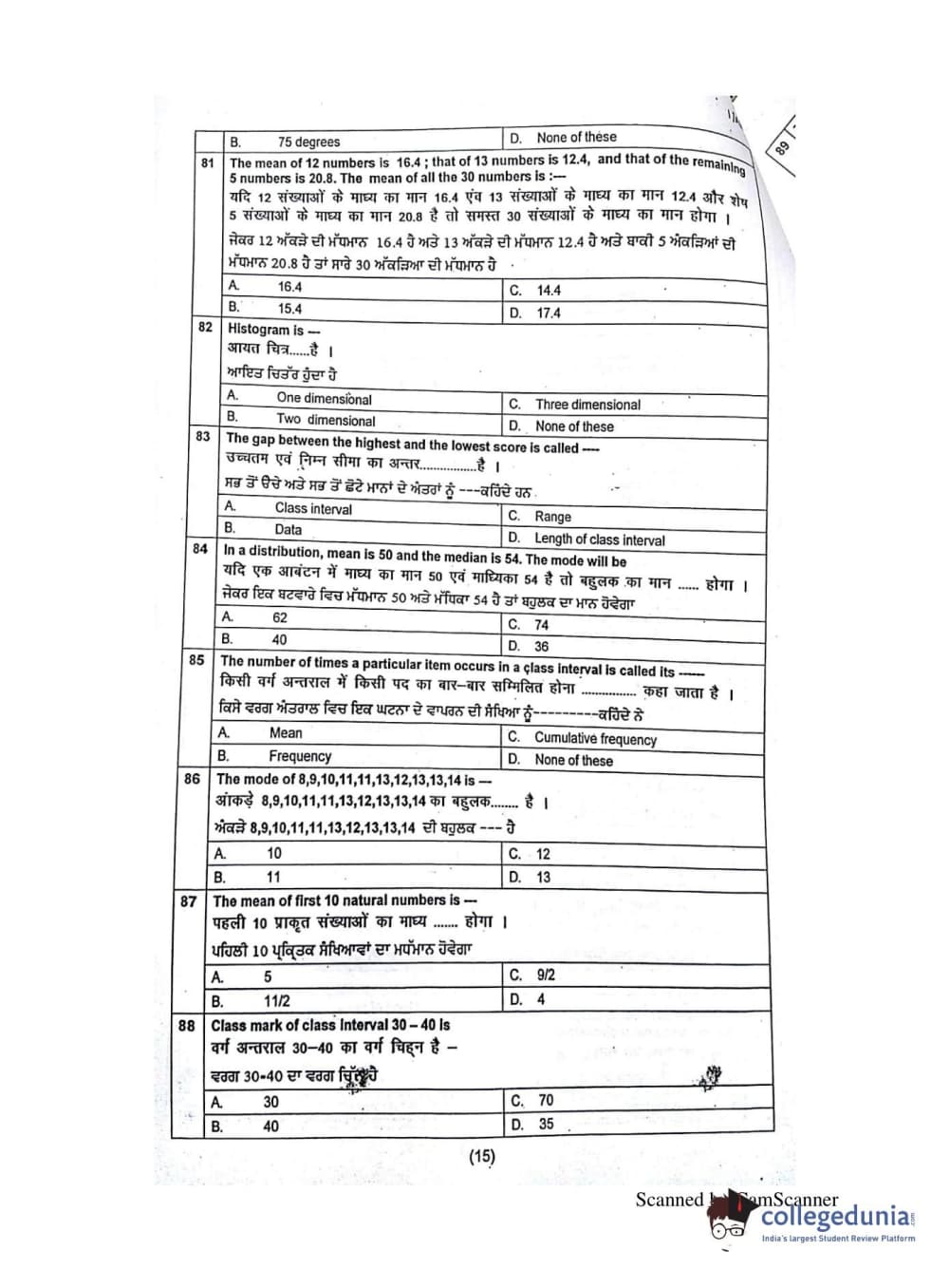 | SLIET SET 2015 SET-1 (A) Question Paper PDF | SLIET SET 2015 SET-1 (A) Answer Key PDF |