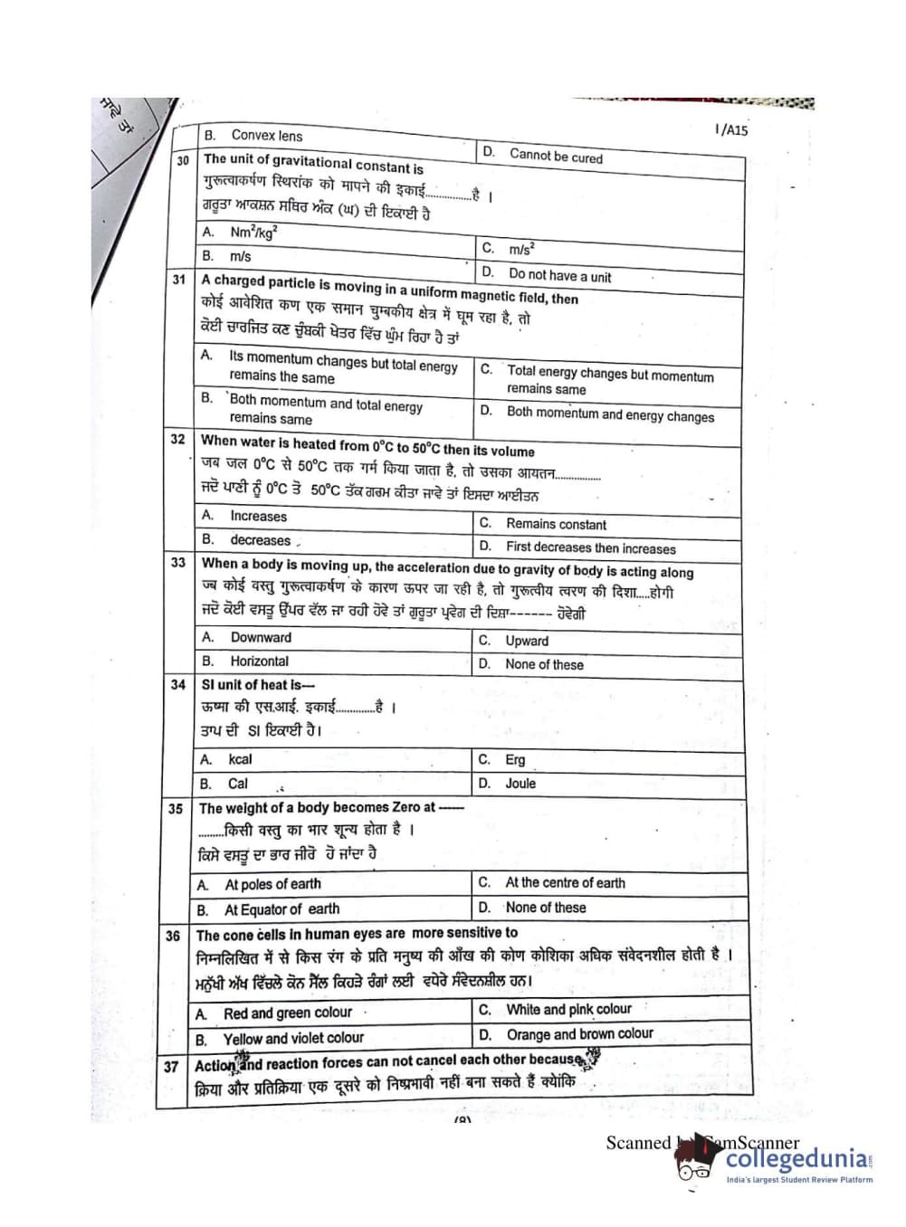 SLIET SET 2015 SET-1(A) Question Paper with Answer Key PDFs
