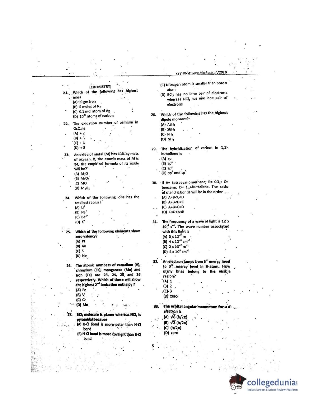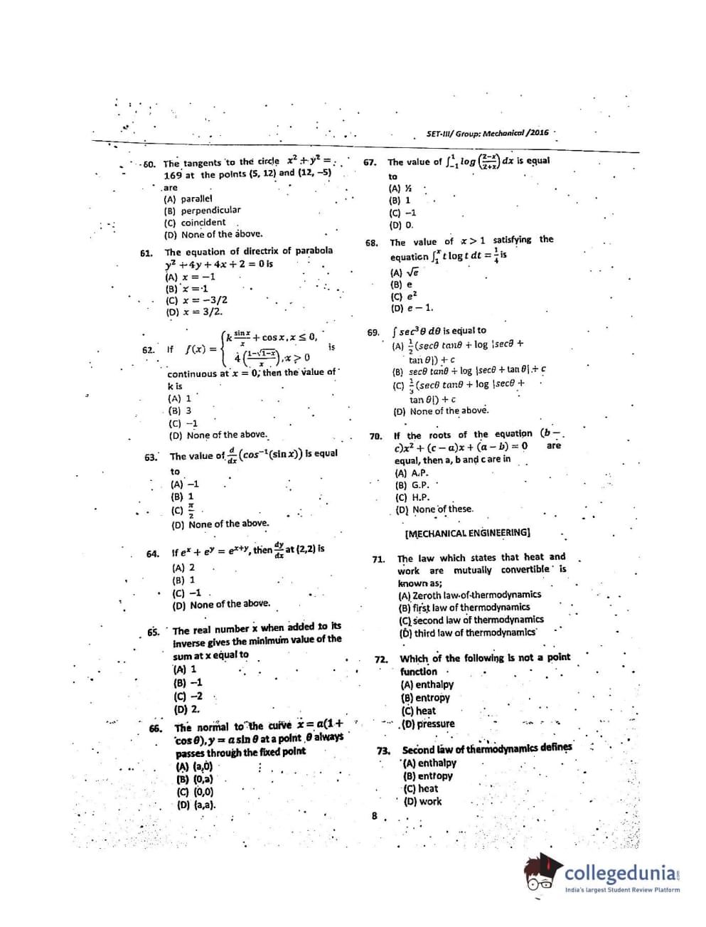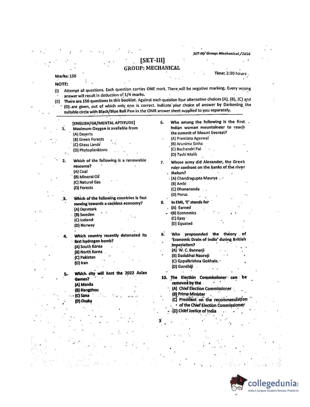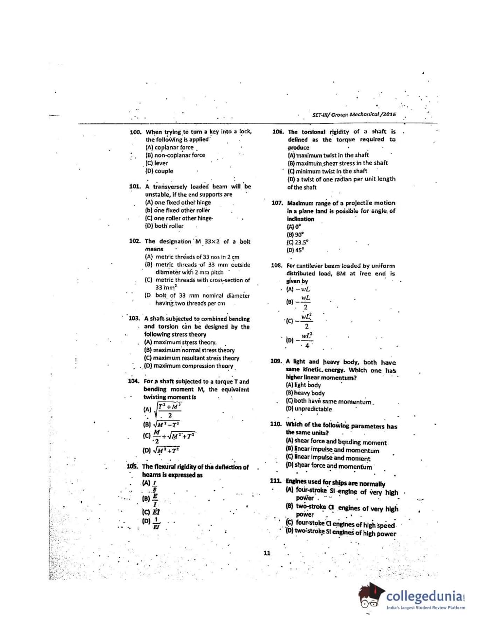 SLIET SET 2016 Mechanical Question paper with answer key pdf conducted on June 5, 2016 is available for download. The exam was successfully organized by Sant Lonogowal Institute. The question paper comprised a total of 150 questions.