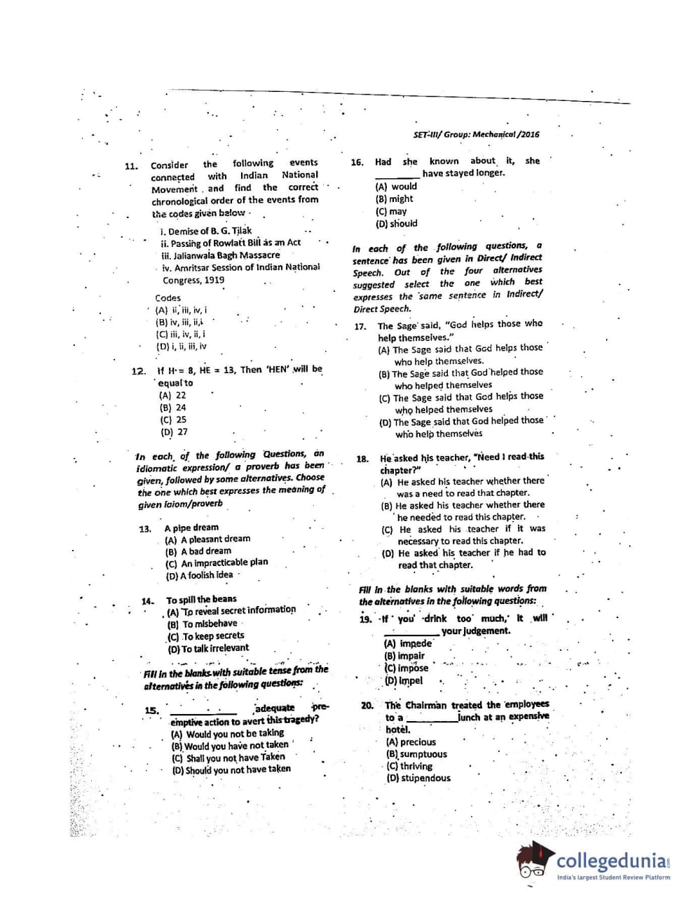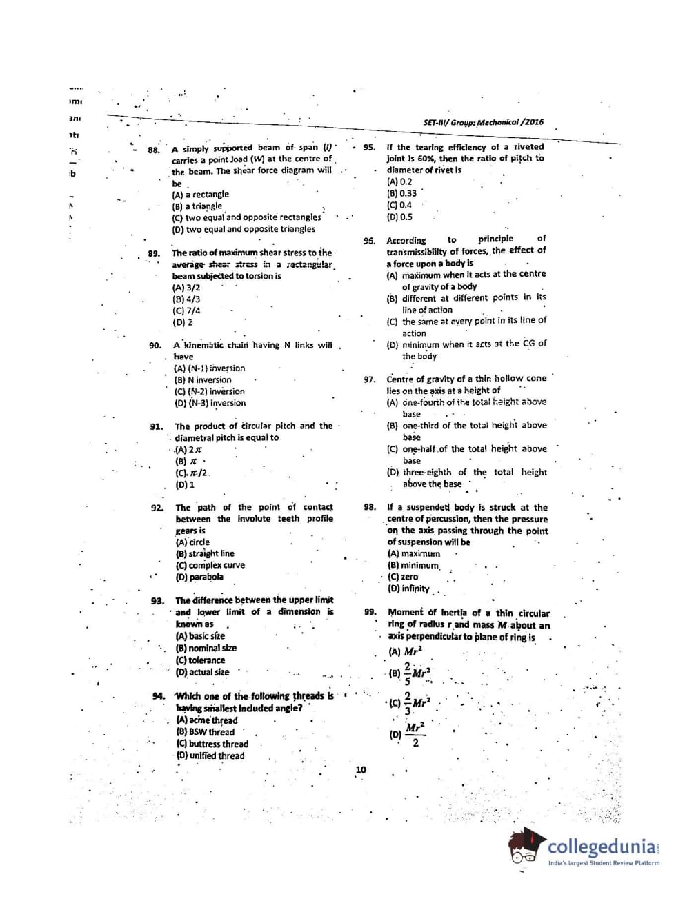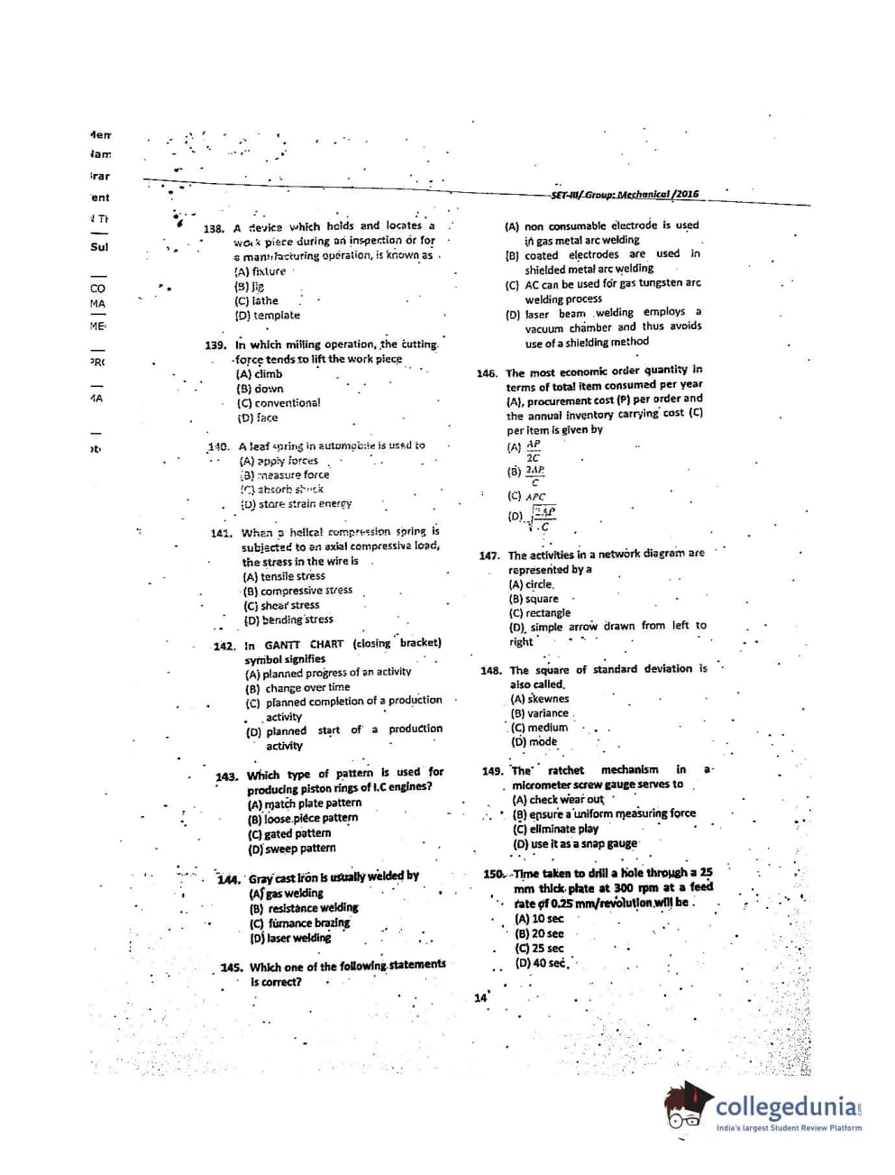 | SLIET SET 2016 Mechanical Question Paper PDF | SLIET SET 2016 Mechanical Answer Key PDF |