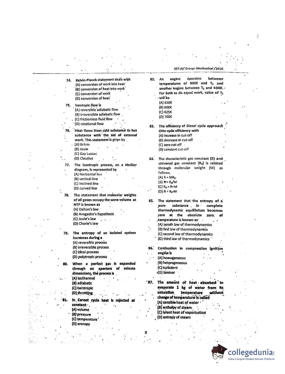 SLIET SET 2016 Mechanical Question Paper with Answer Key PDFs