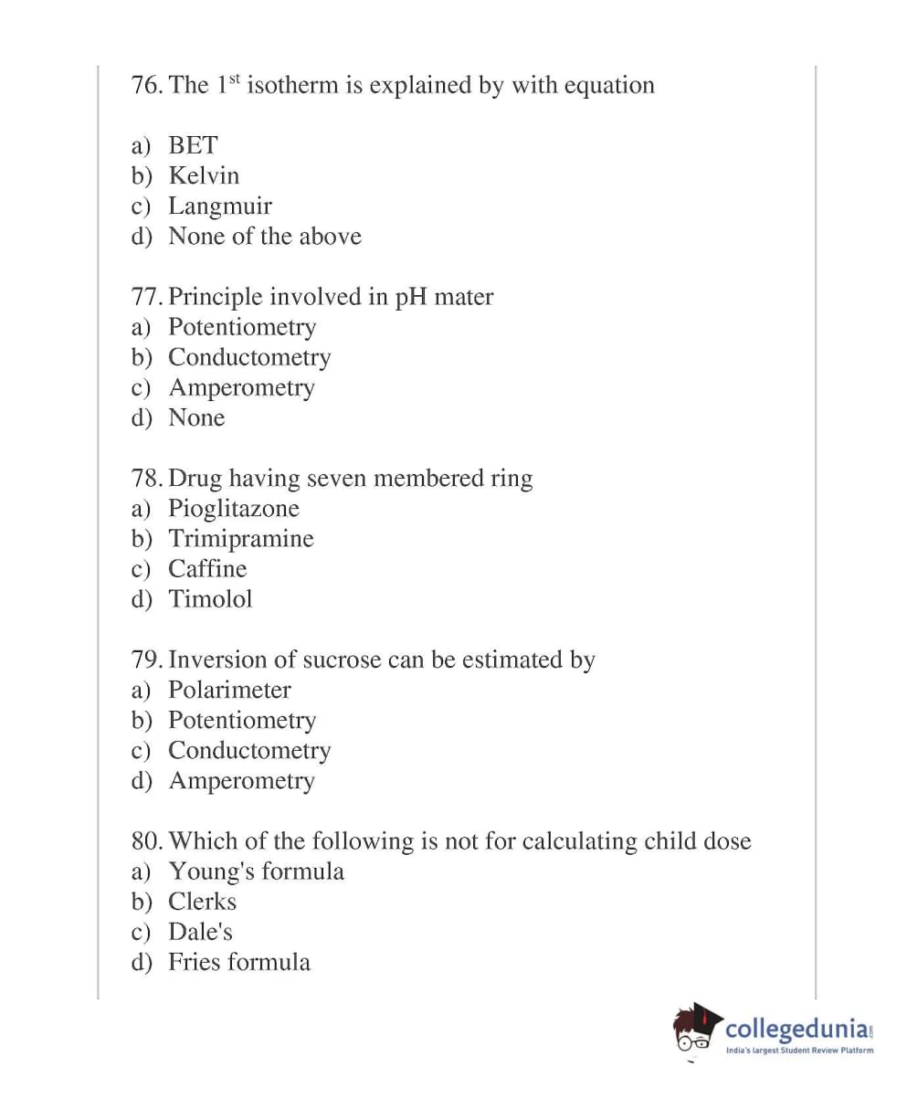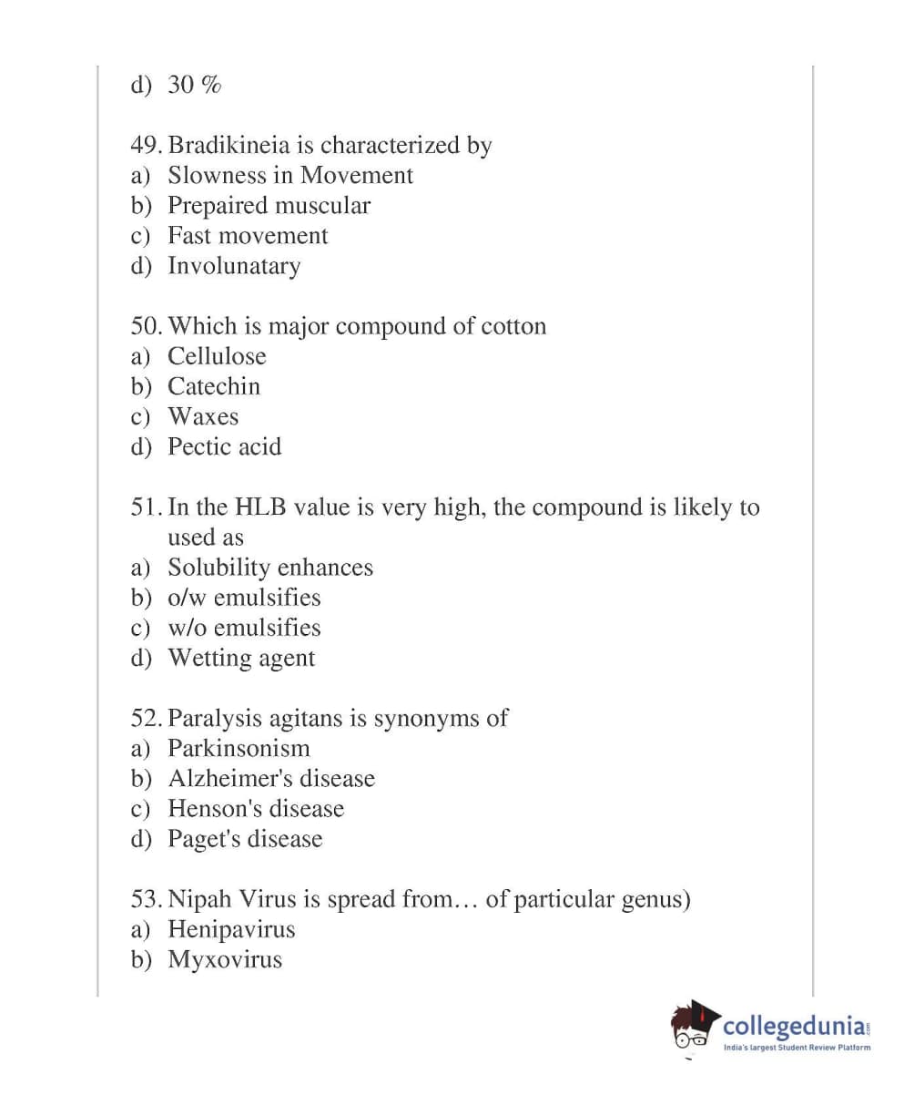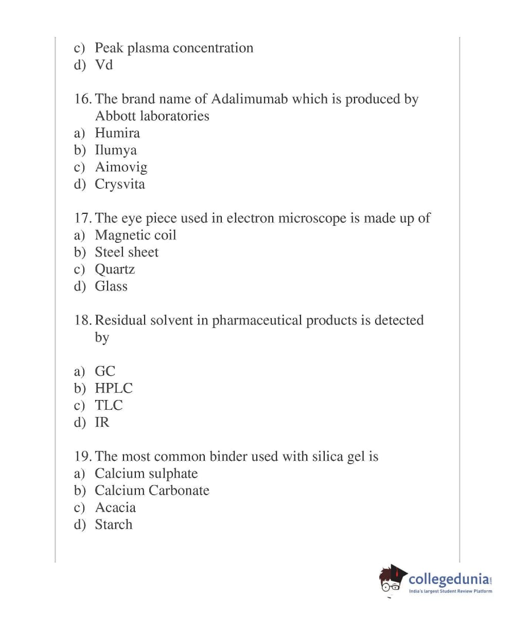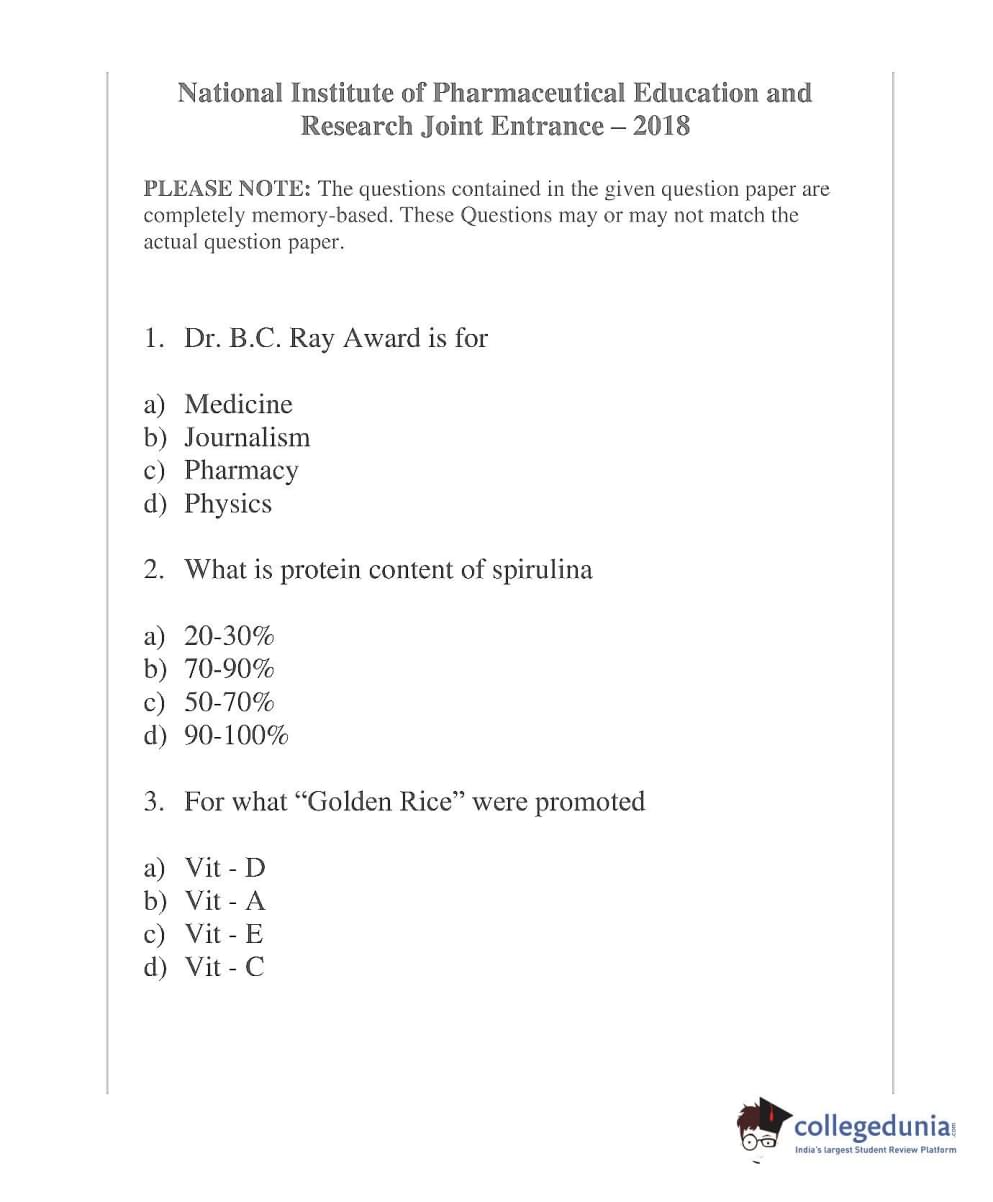 NIPER JEE 2018 Question paper with answer key pdf conducted on June 10, 2018 is available for download. The exam was successfully organized by National Institute of Pharmaceutical Education & Research (NIPER), Ahmedabad. The question paper comprised a total of 100 questions.