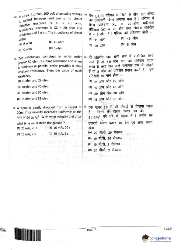 JEECUP 2020 A Question Paper with Answer Key PDF
