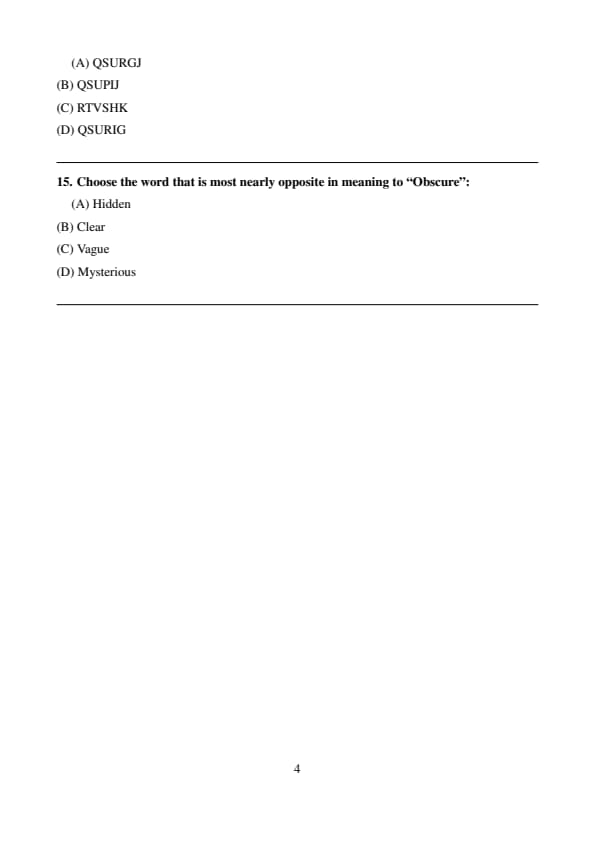 | English | 5 | Easy | This section will focus on Grammar and comprehension-based questions. |