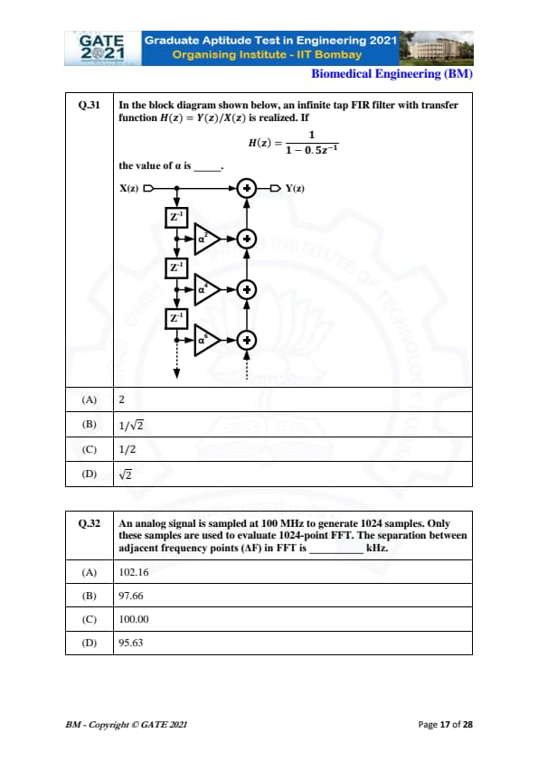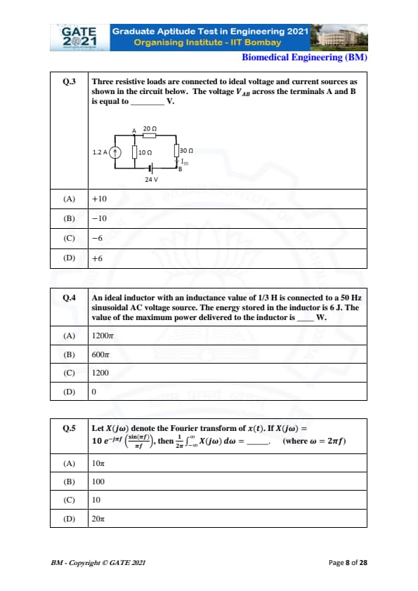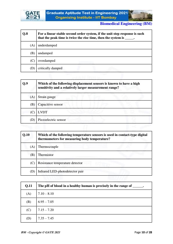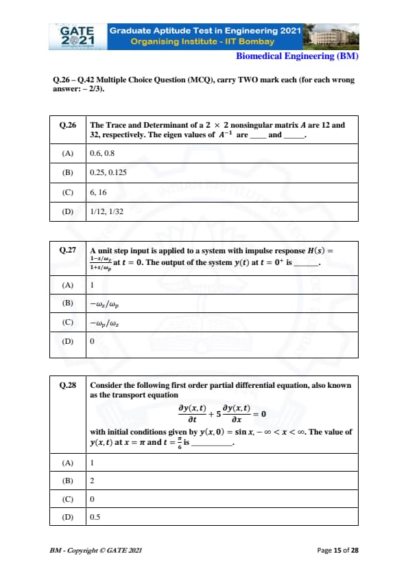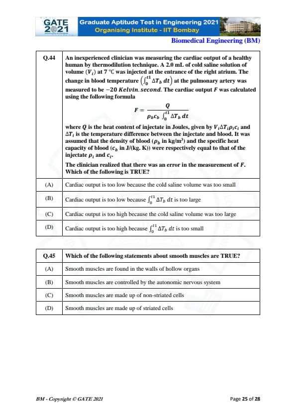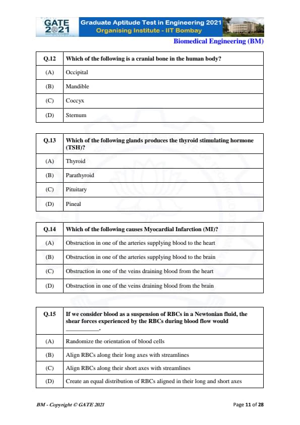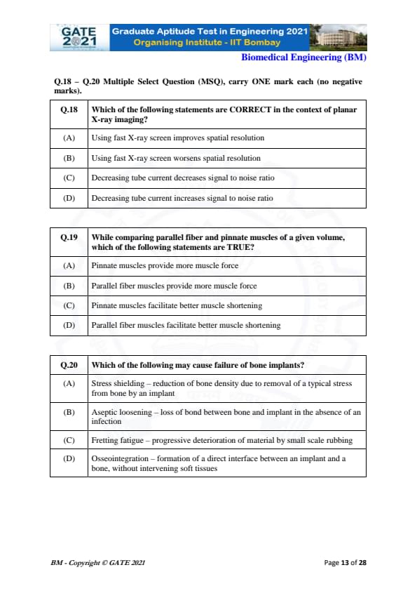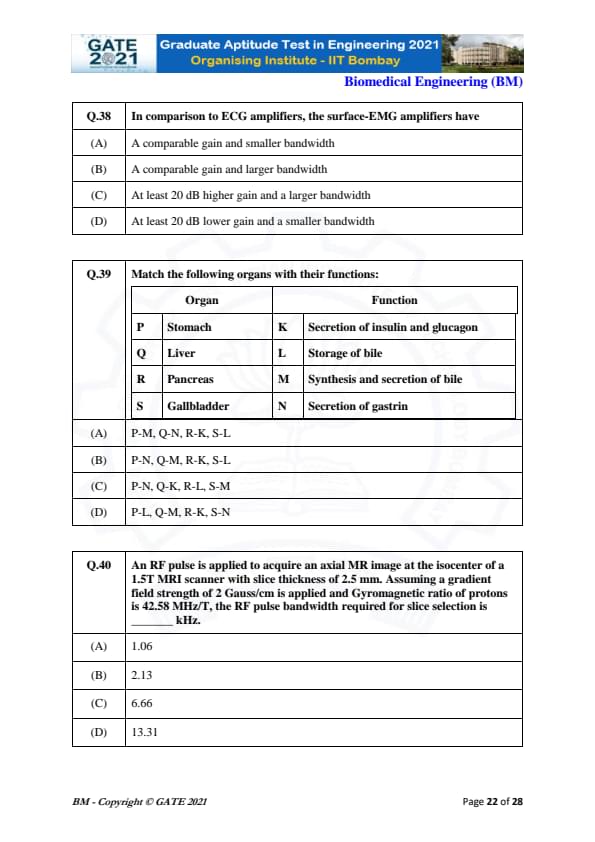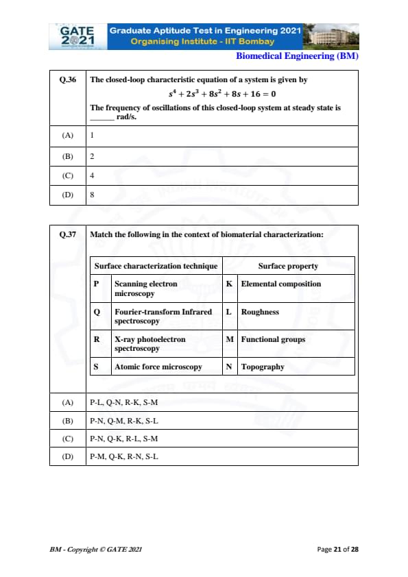 | GATE 2021 Biomedical Engineering (BM) Question Paper | Check Solutions |
