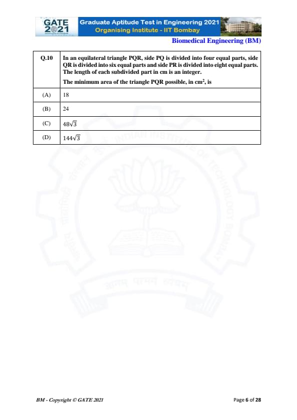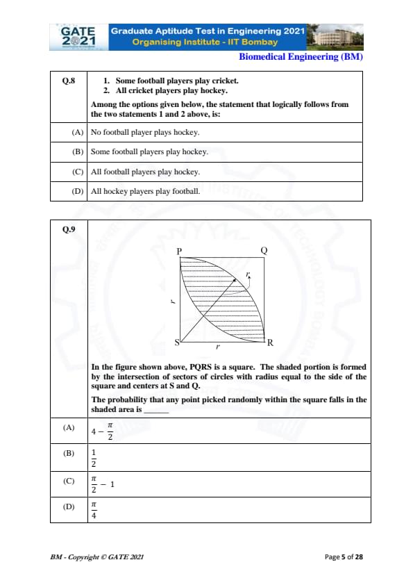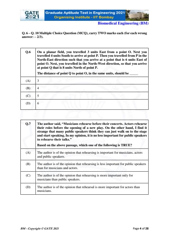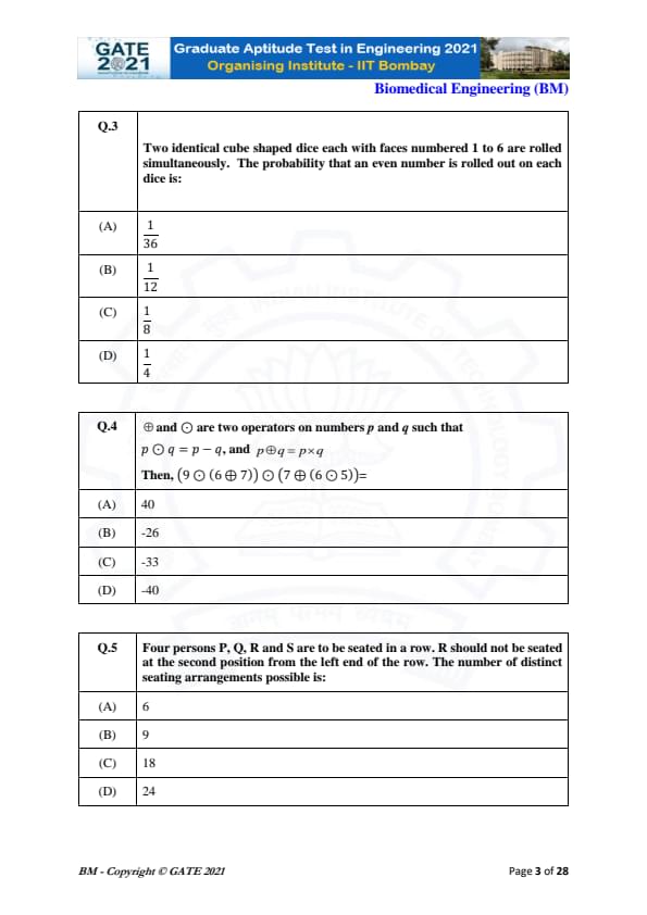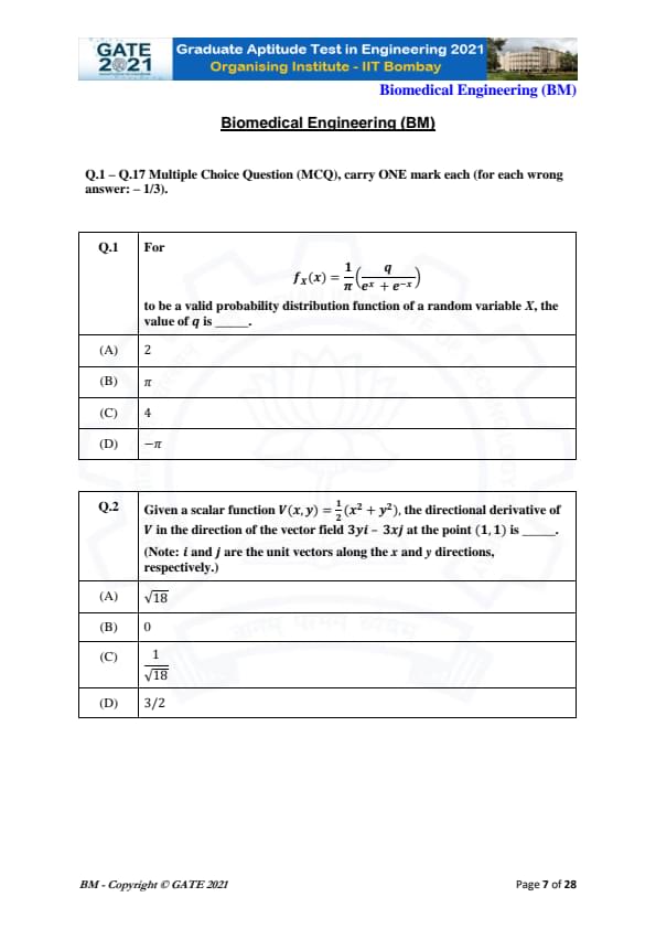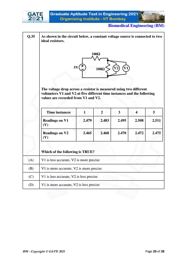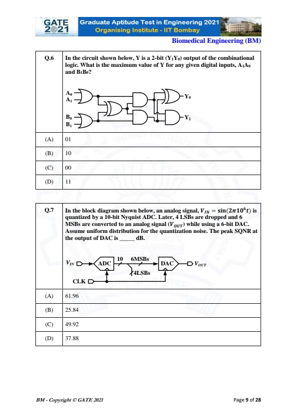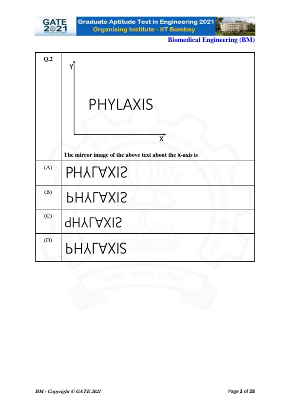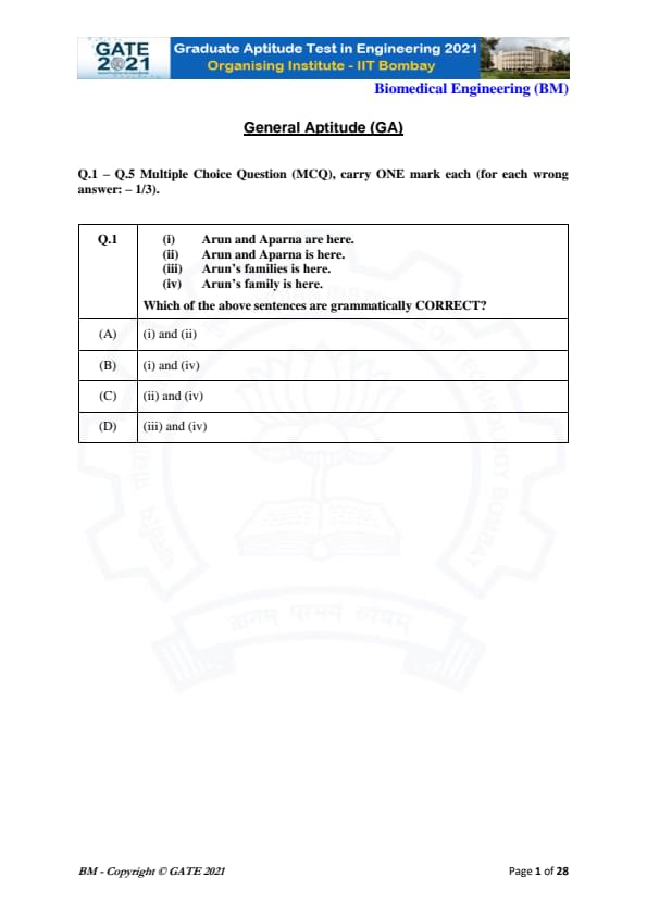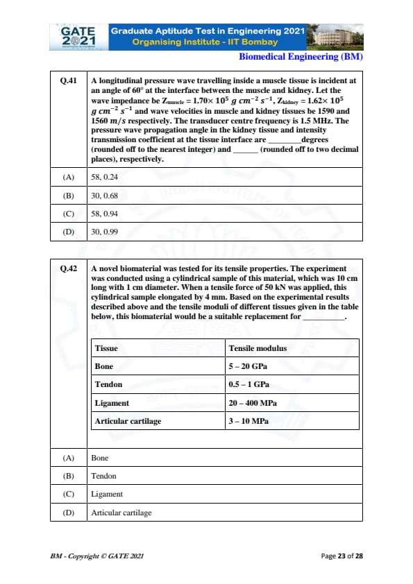 | GATE 2021 Biomedical Engineering (BM) Question Paper | Check Solutions |