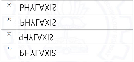 We are given the text PHYLAXIS written above the x-axis. We need to find its mirror image when reflected across the x-axis.
