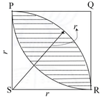 PQRS is a square of side \(r\). Two quarter-circles of radius \(r\) are drawn—one centered at S and one at Q. Their overlapping region forms the shaded lens-shaped area.