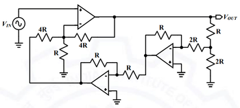 Where \(V_{in}\) is the input voltage applied across the resistor \(R_{in}\), and \(R_f\) is the feedback resistor. Here, \(V_{in}\) is the difference of \(+10\) V and \(-10\) V.