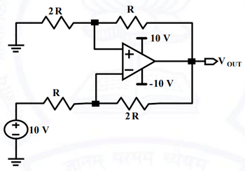 Thus, the output voltage \(V_{out}\) is \( \boxed{-10}\ V \). Quick Tip: Inverting amplifier gain is given by the ratio of feedback resistor to input resistor.