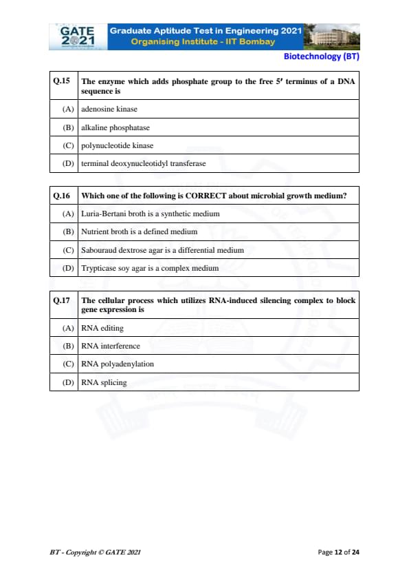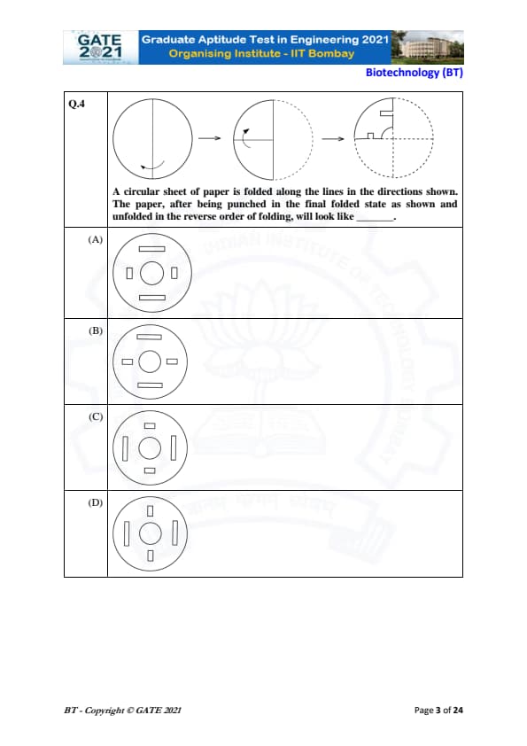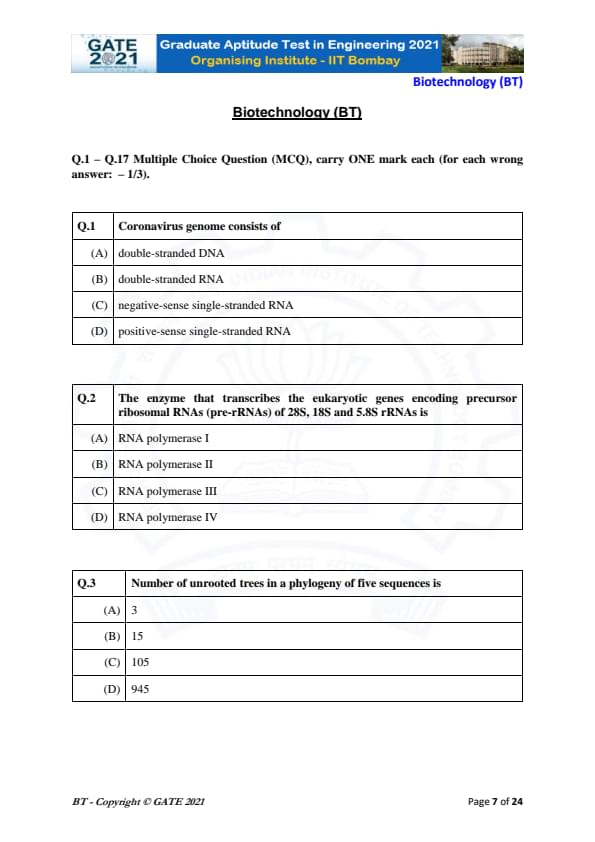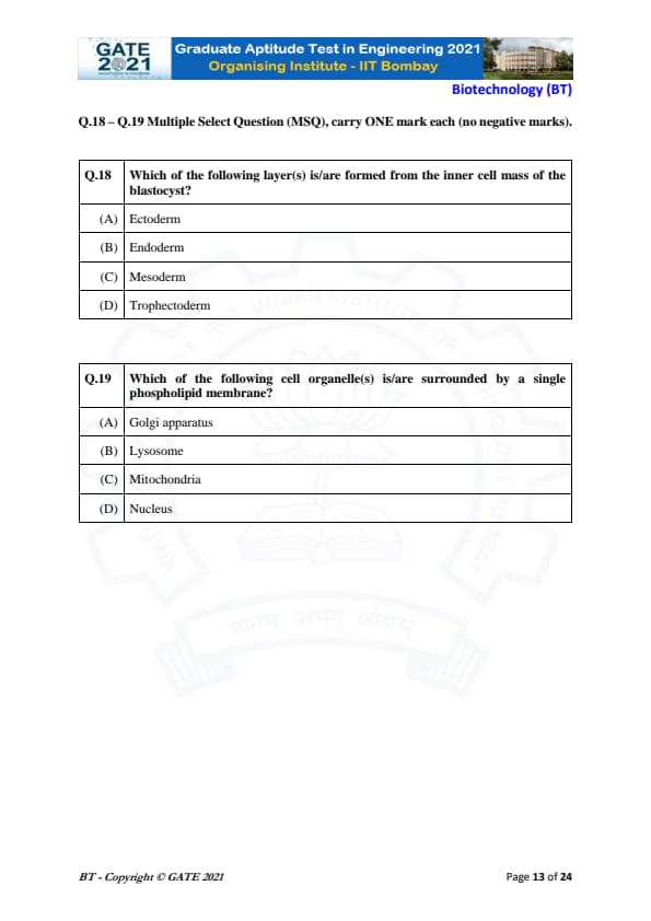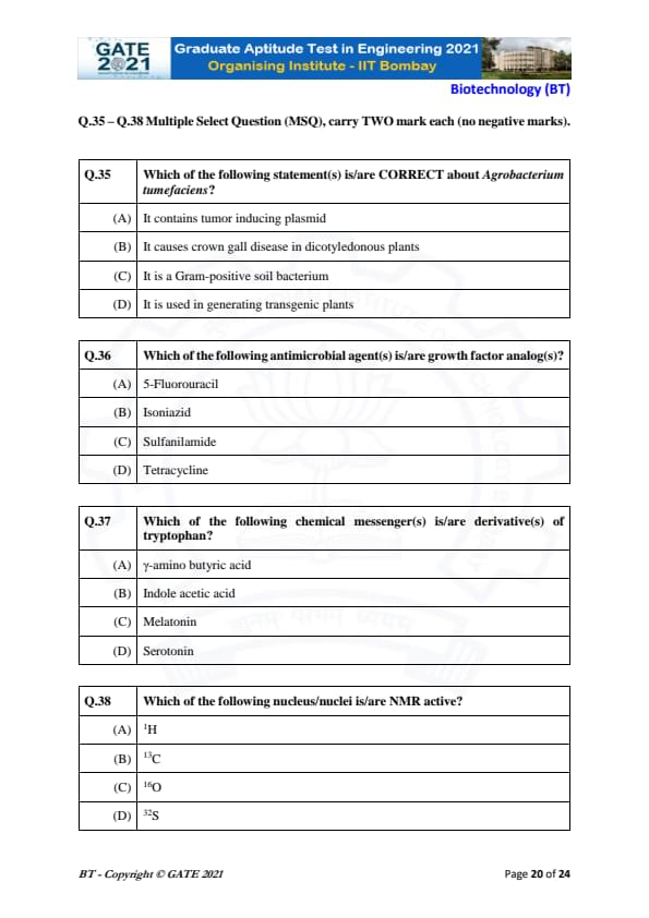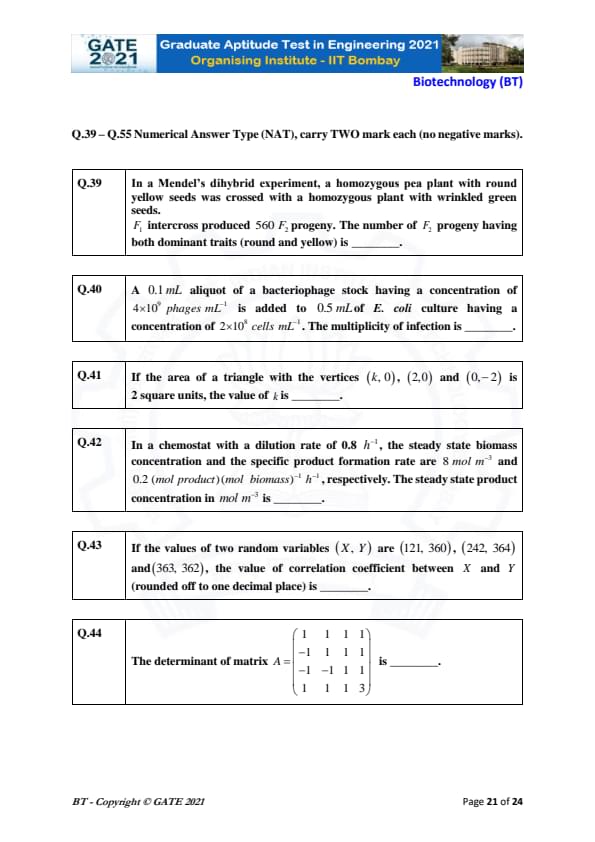 | GATE 2021 BT Question Paper | GATE 2021 BT Answer Key | GATE 2021 BT Solutions |