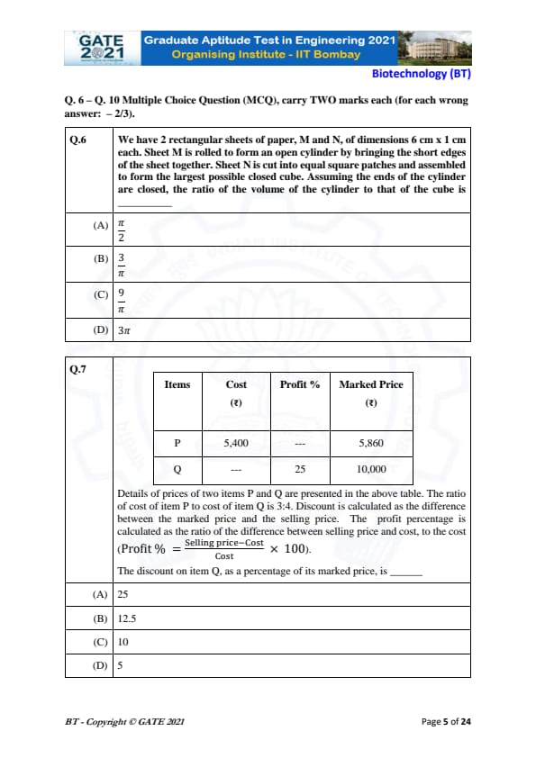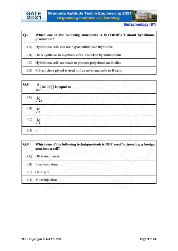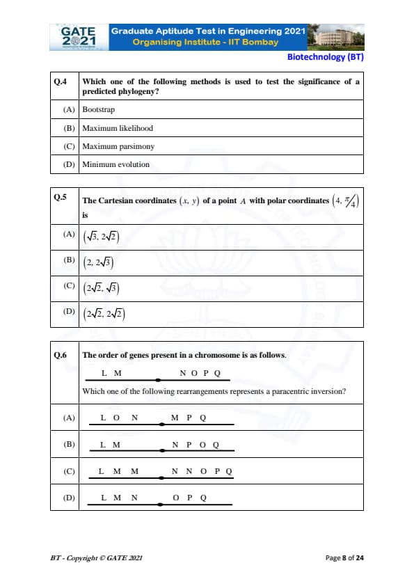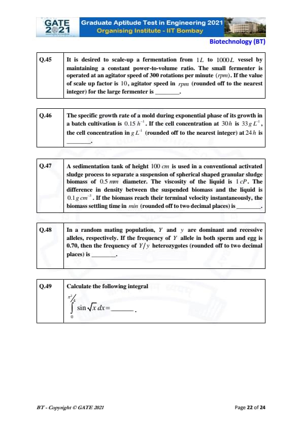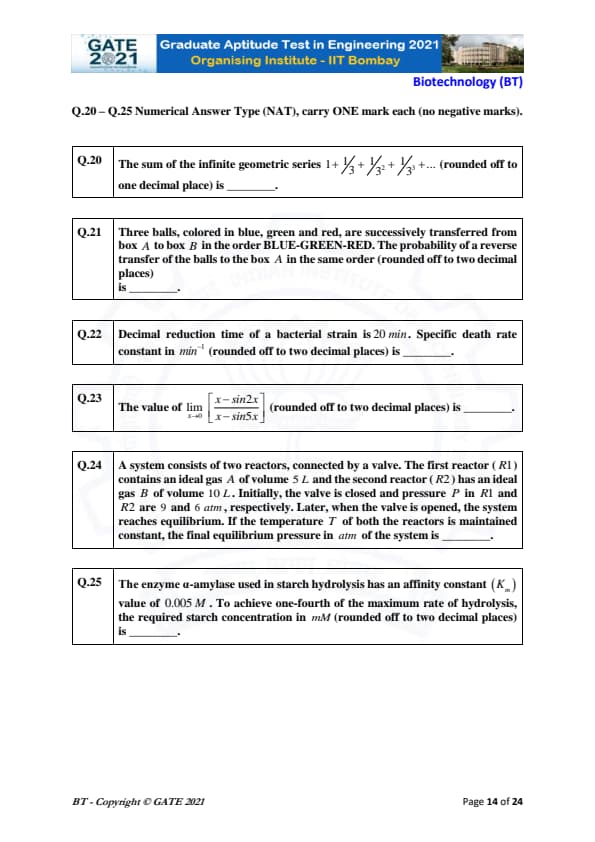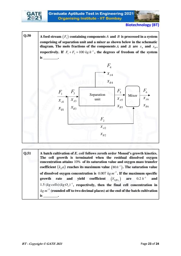 | GATE 2021 BT Question Paper | GATE 2021 BT Answer Key | GATE 2021 BT Solutions |