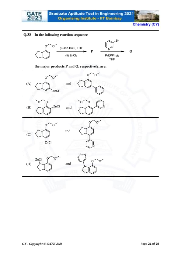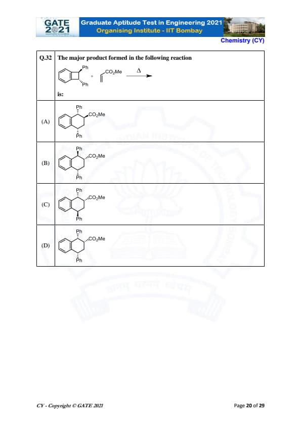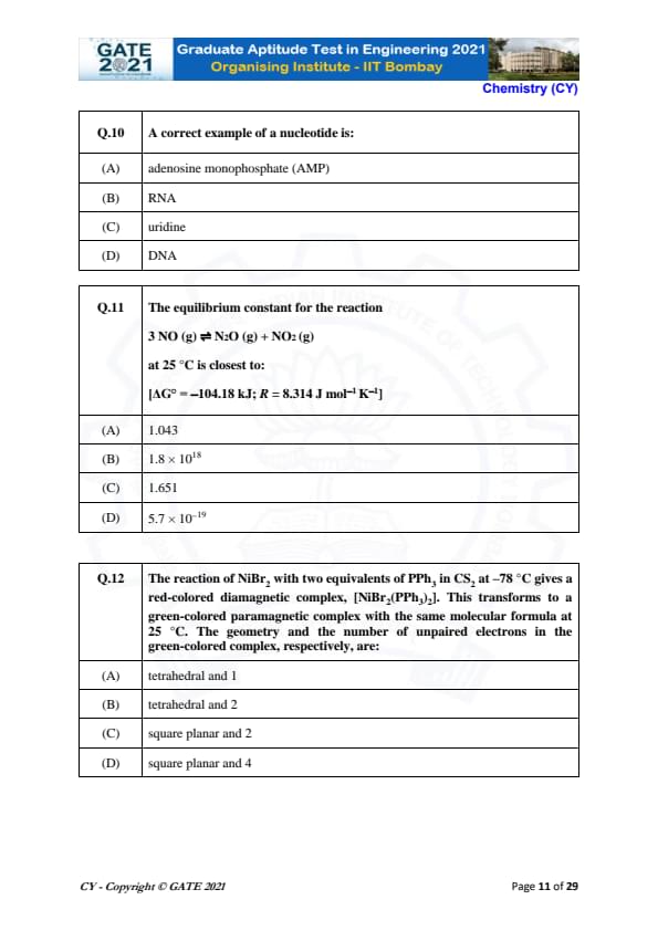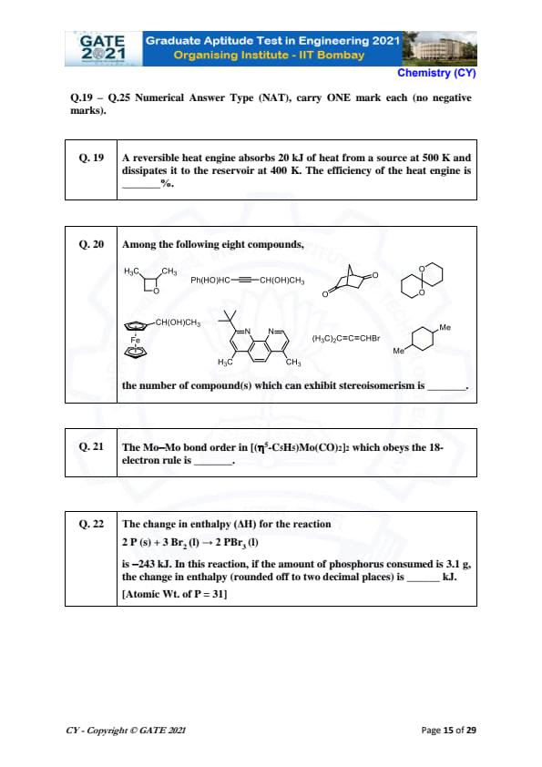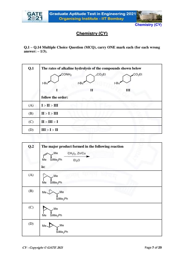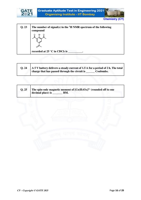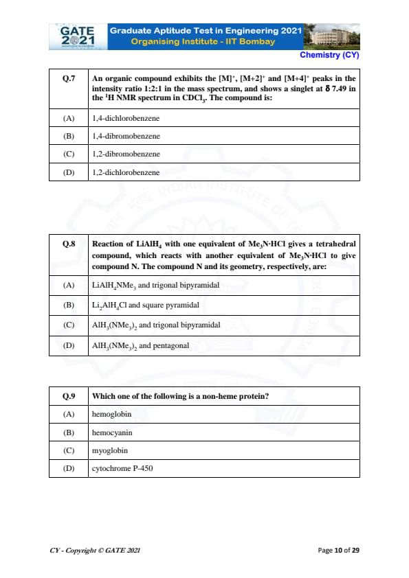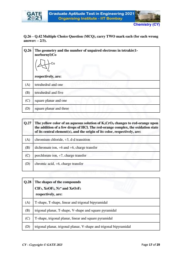 | GATE 2021 Chemistry (CY) Question Paper | Check Solutions |