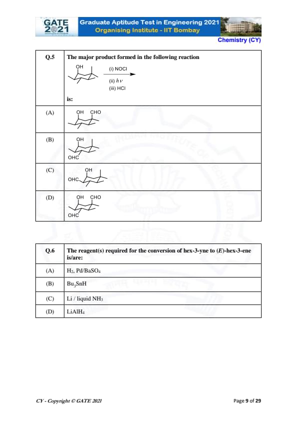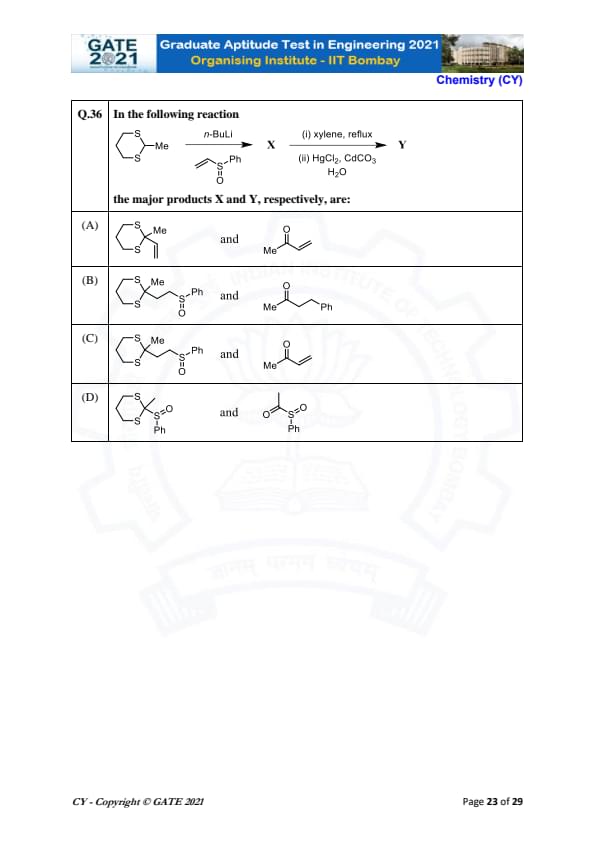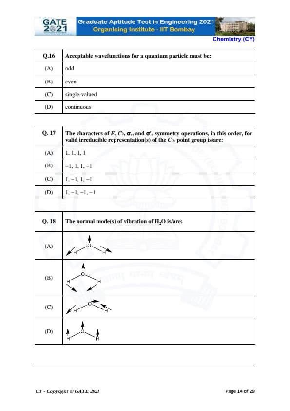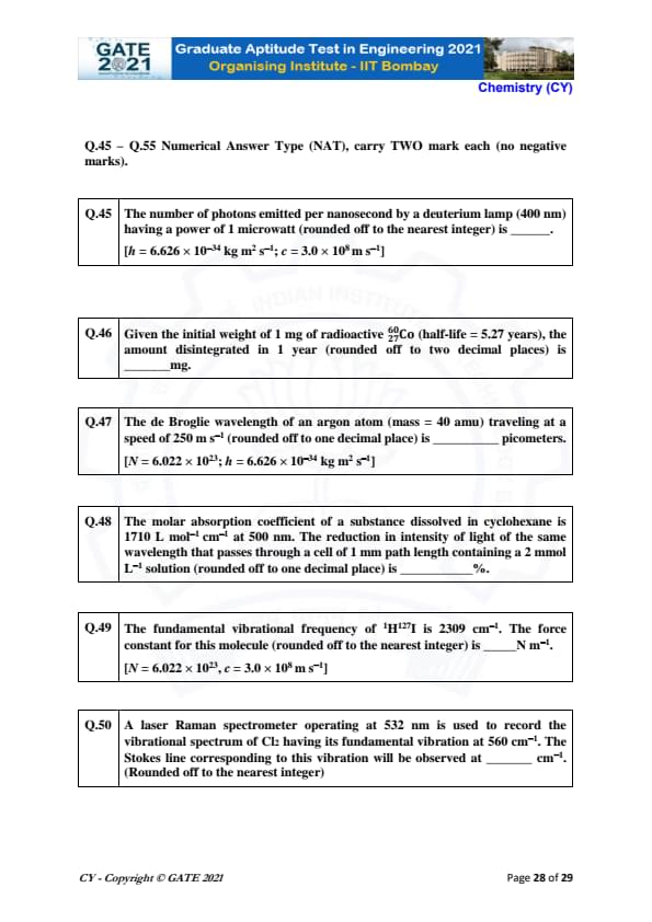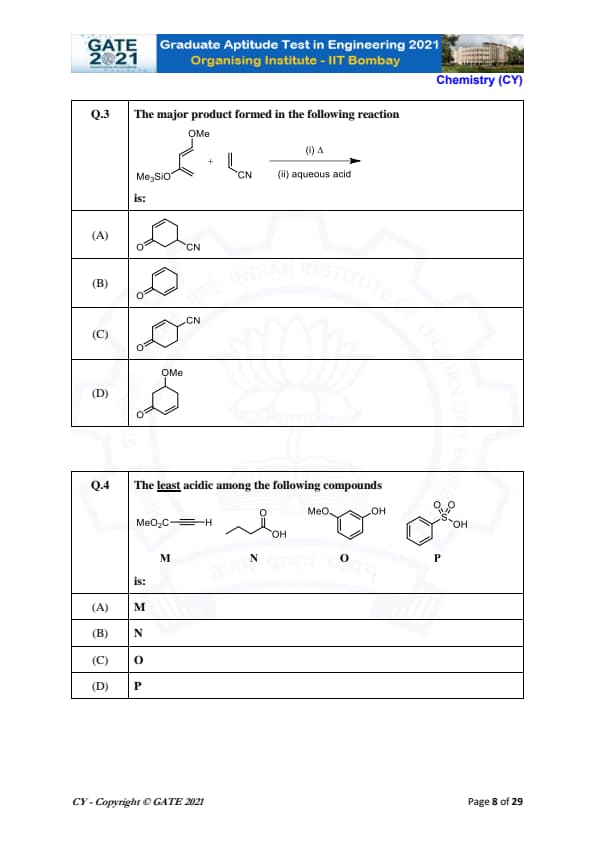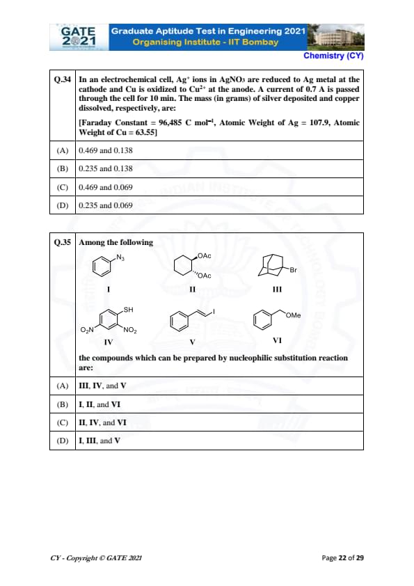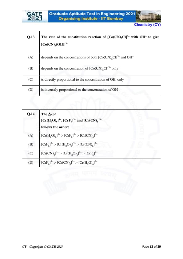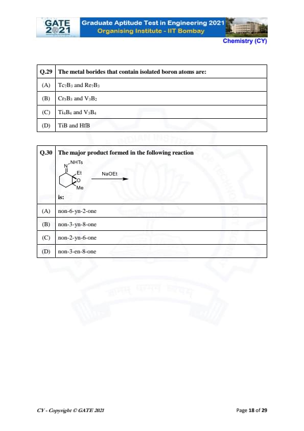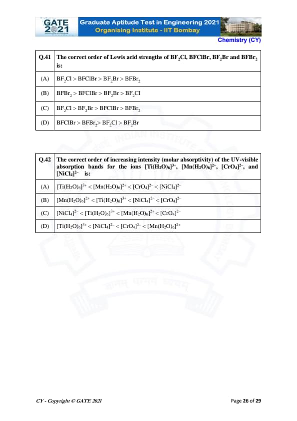 | GATE 2021 Chemistry (CY) Question Paper | Check Solutions |