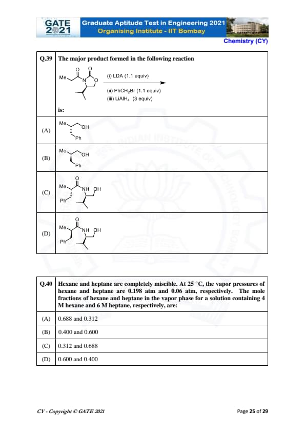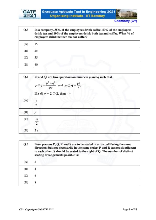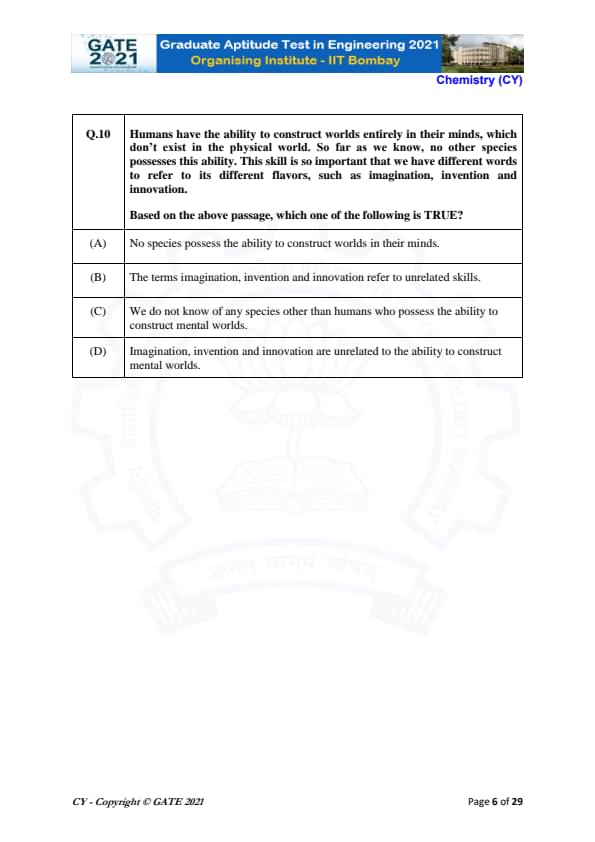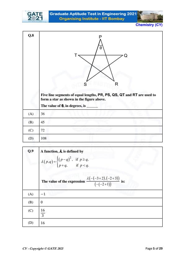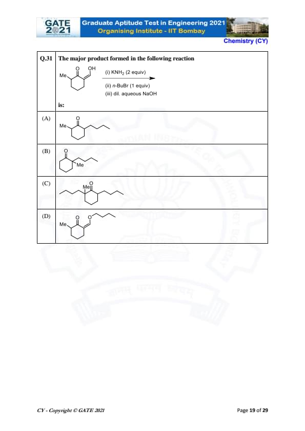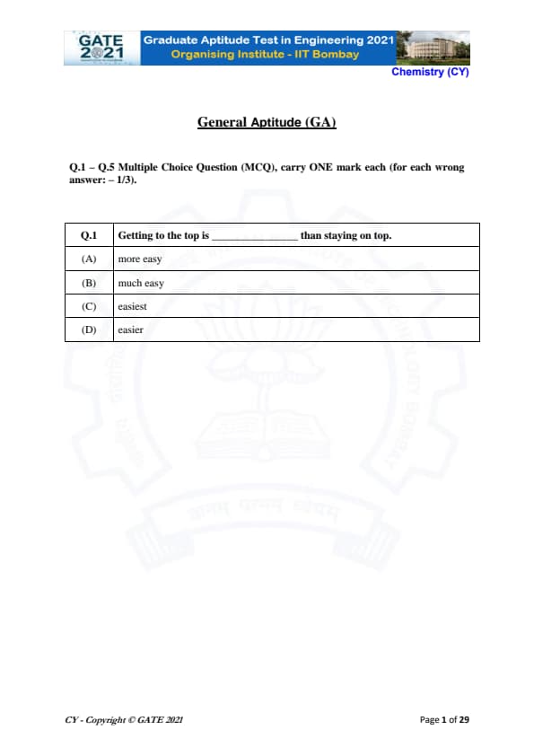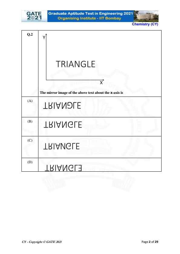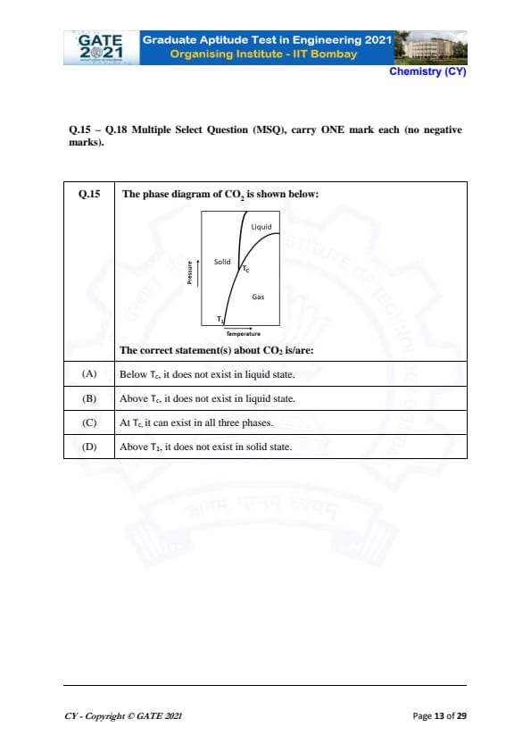 | GATE 2021 Chemistry (CY) Question Paper | Check Solutions |