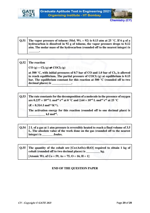 GATE 2021 Chemistry (CY) Question Paper with Solutions