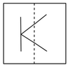 The original figure contains a vertical line at the center and two slanted lines attached to it. When reflected across the dotted line, the right-side slanted line flips horizontally, forming a symmetric “< >” shape.