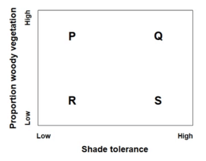 - Area 3 has species Q, R, and S. This is similar in diversity to Area 1, but it lacks species P, making the diversity slightly lower than in Area 1.