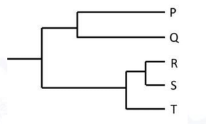 The following phylogeny shows how species P to T are related to each other. The branch lengths indicate the degree of evolutionary change.