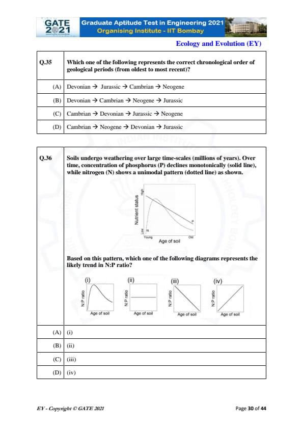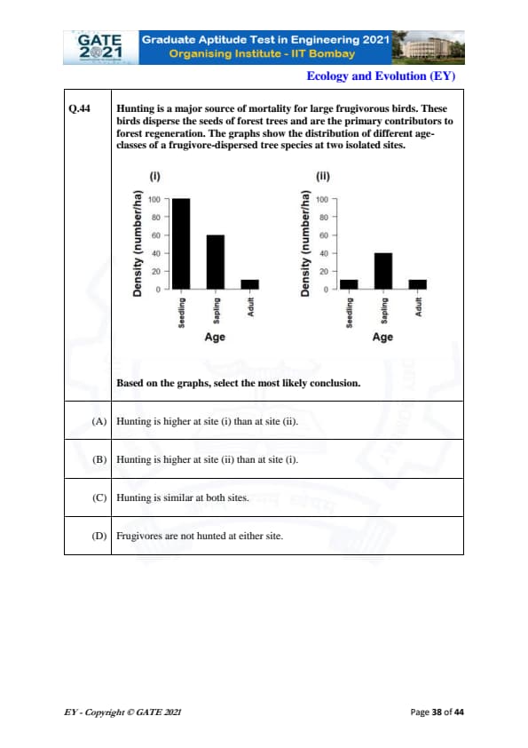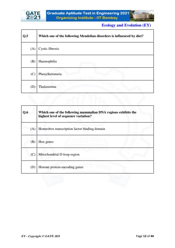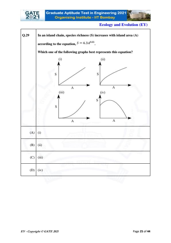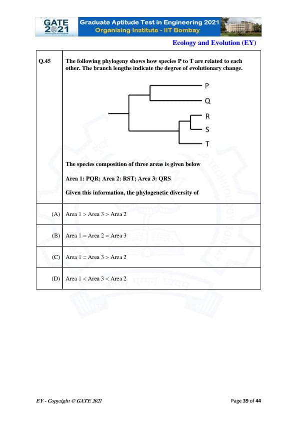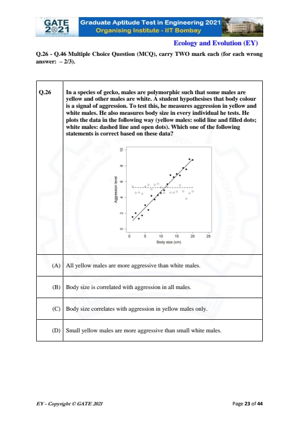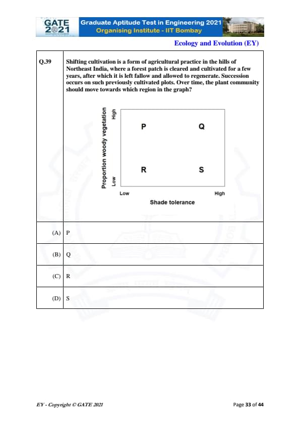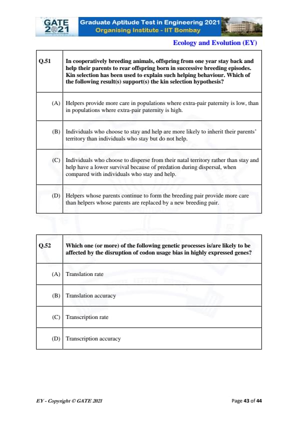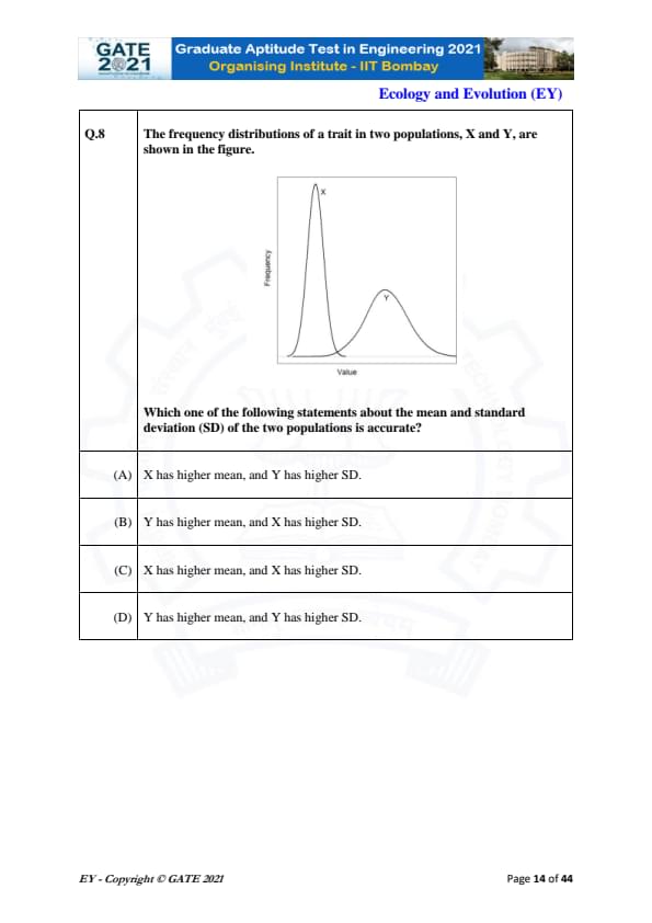 GATE 2021 Ecology and Evolution (EY) Question Paper with Solutions