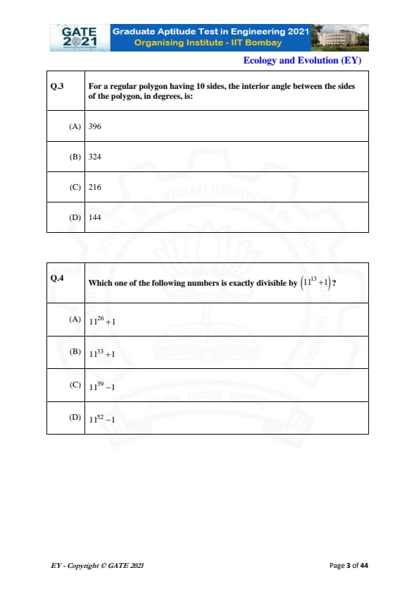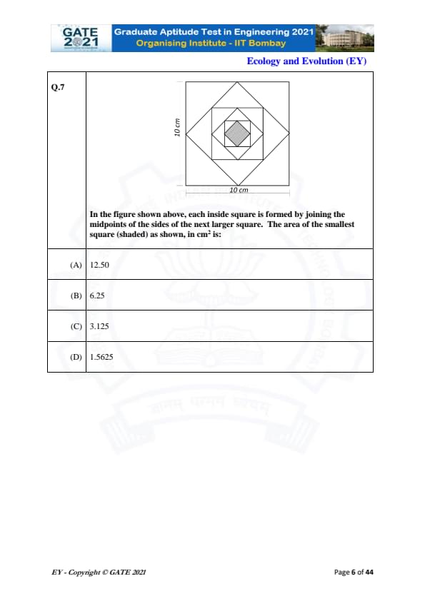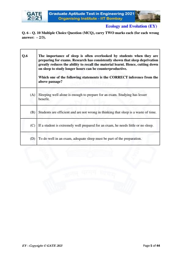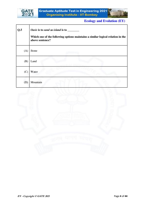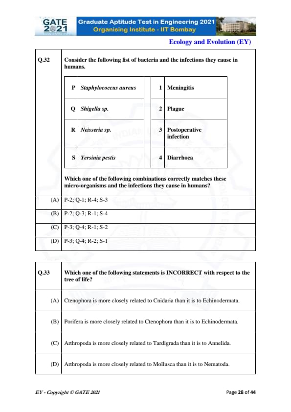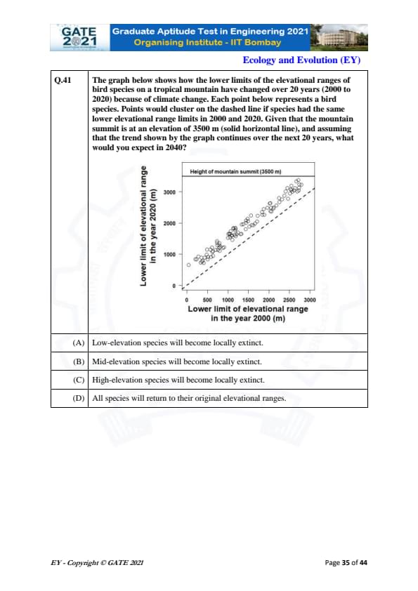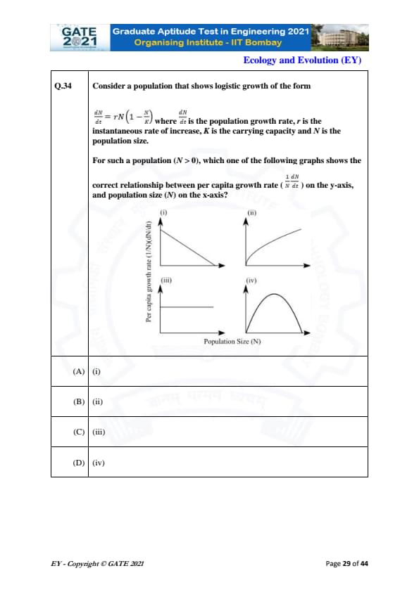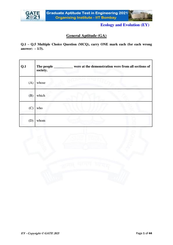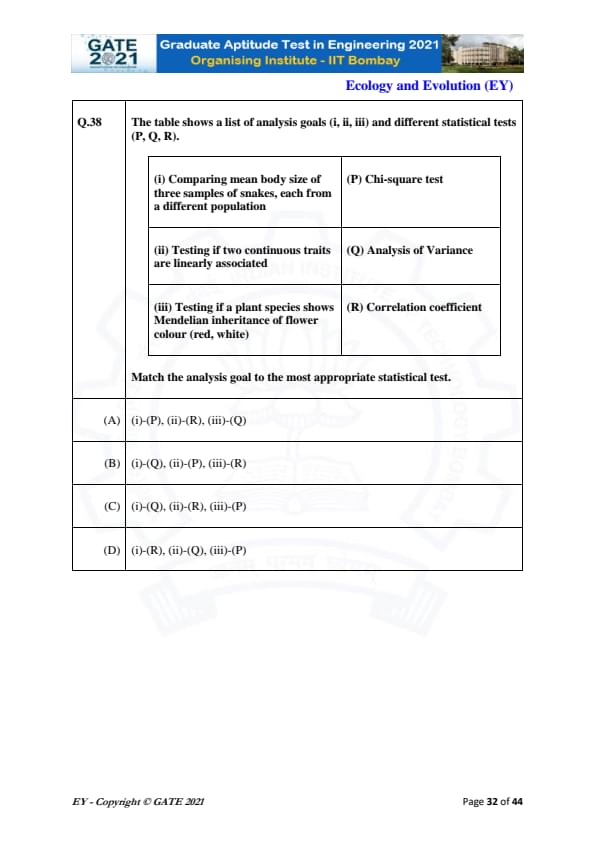 GATE 2021 Ecology and Evolution (EY) Question Paper with Solutions