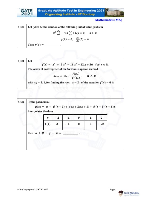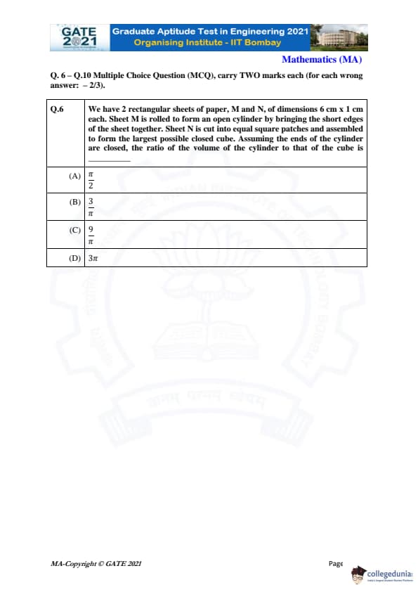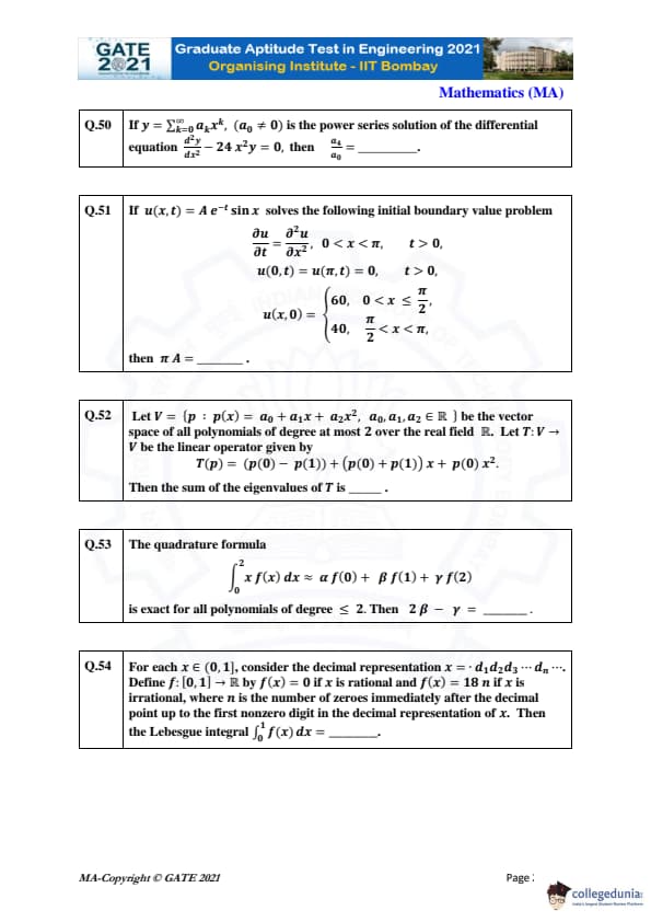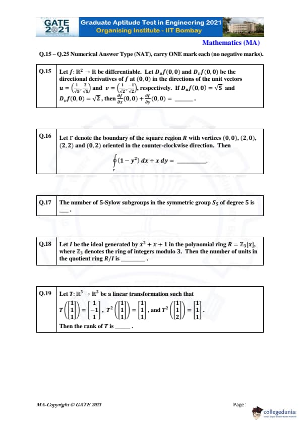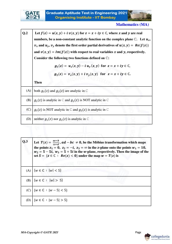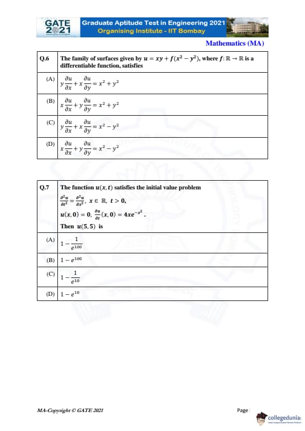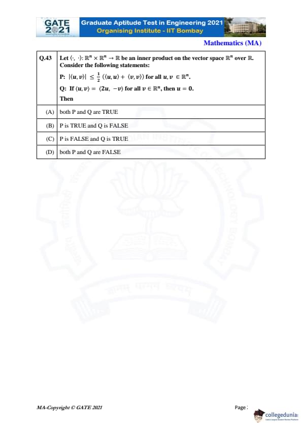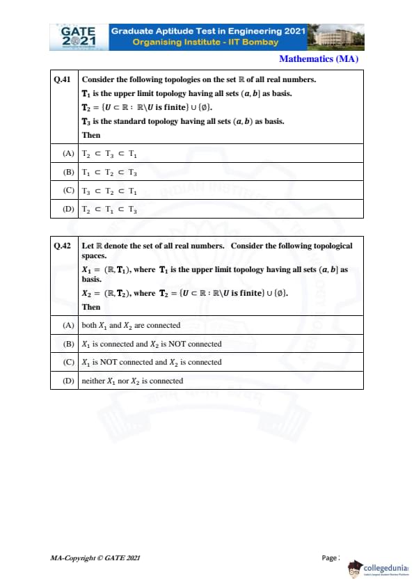 | GATE 2021 Mathematics (MA) Question Paper | Check Solutions |