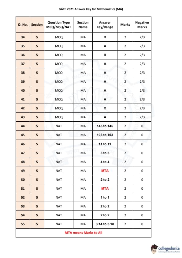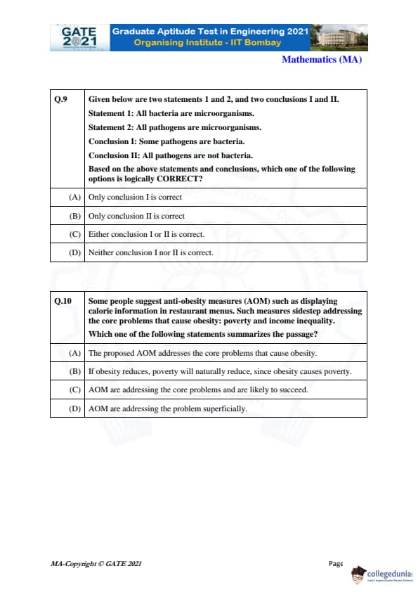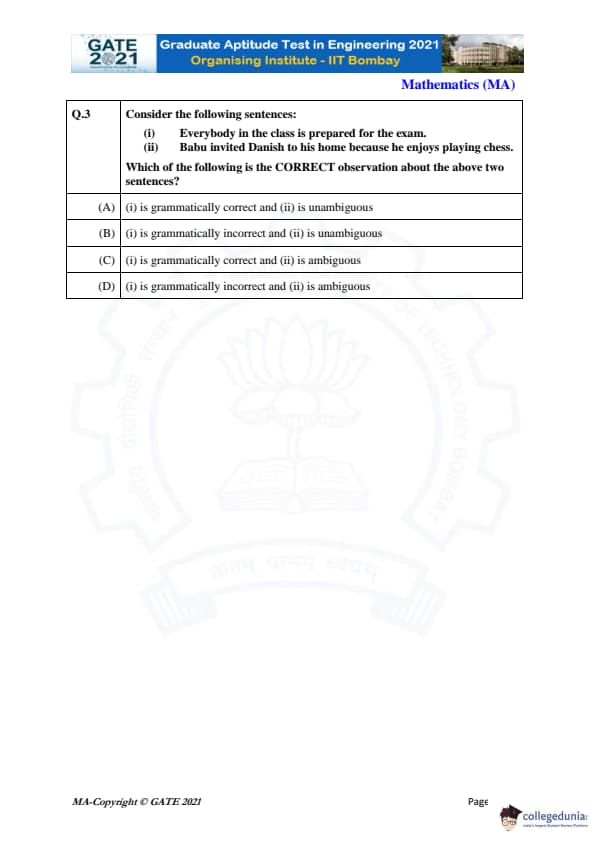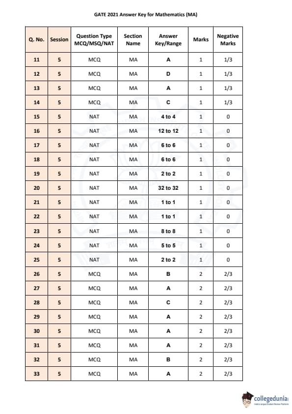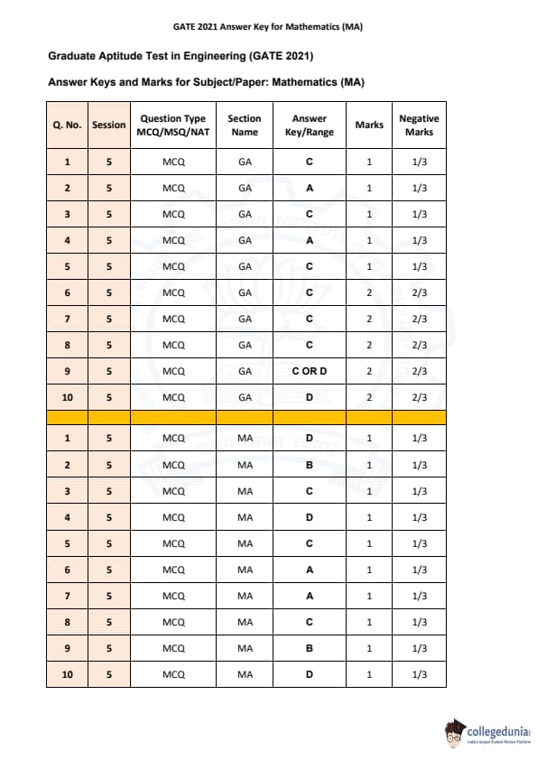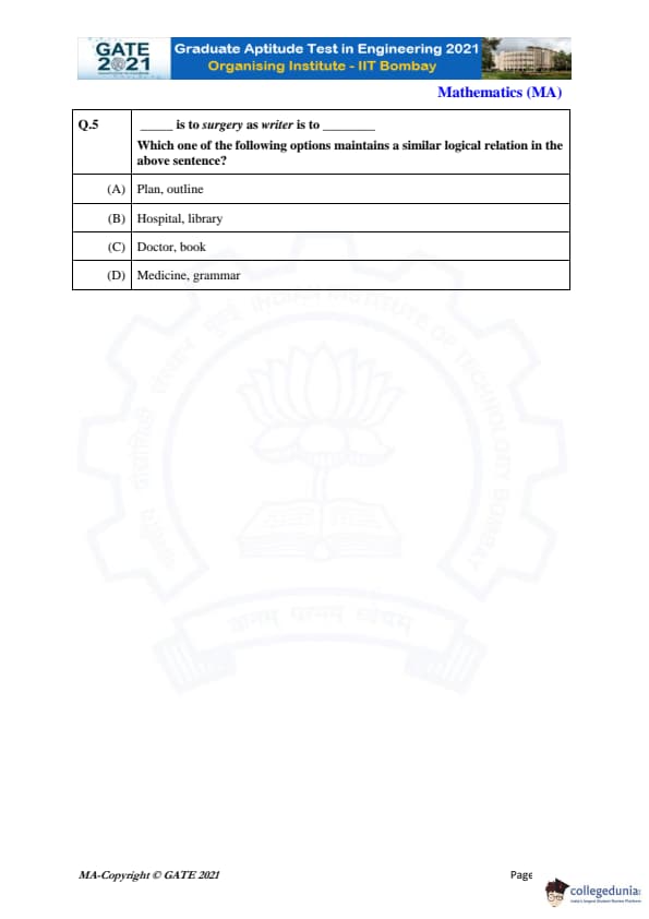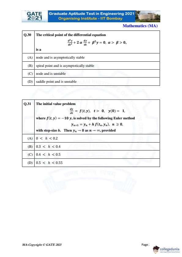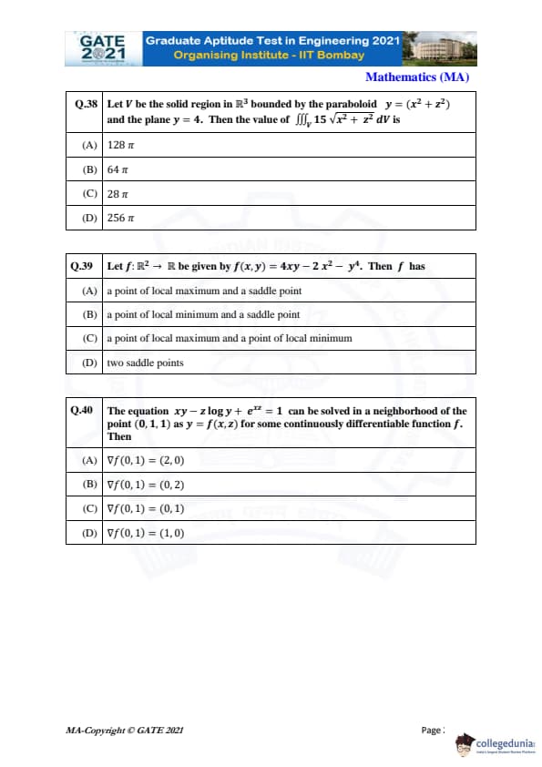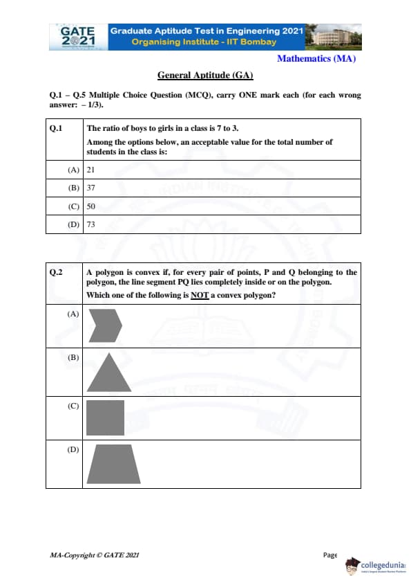 | GATE 2021 Mathematics (MA) Question Paper | Check Solutions |
