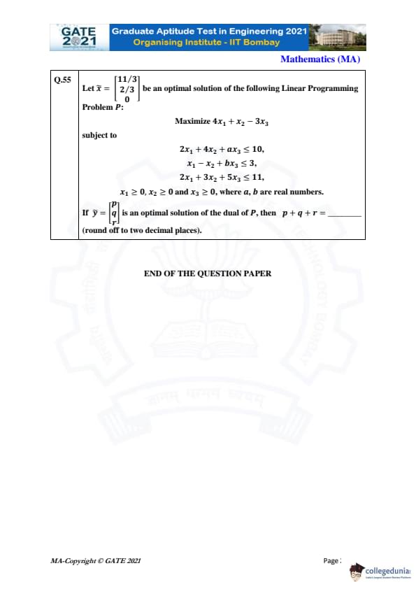 GATE 2021 Mathematics (MA) Question Paper with Solutions