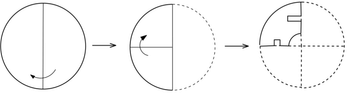 A circular sheet of paper is folded along the lines in the directions shown. The paper, after being punched in the final folded state as shown and unfolded in the reverse order of folding, will look like \hspace{2cm}.