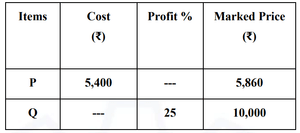 Using the given cost of item P (₹5400), we can calculate the cost of item Q: \[ Cost of Q = \frac{4}{3} \times 5400 = 7200 \]