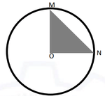 The triangle MON is a right triangle, and O is the center of the circle, which means the segments OM and ON are the radii of the circle. Therefore, the area of triangle MON can be written as: \[ Area of triangle MON = \frac{1}{2} \times base \times height \]
