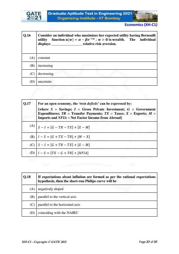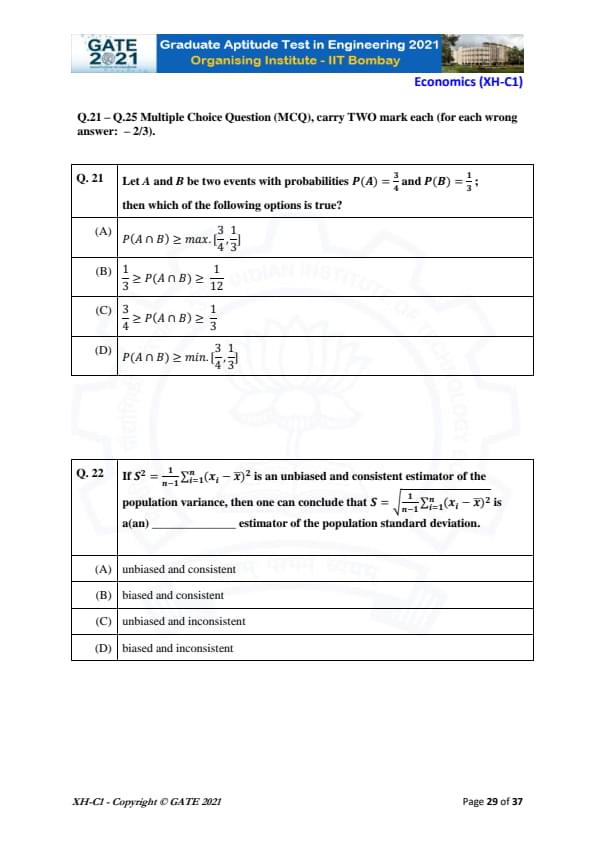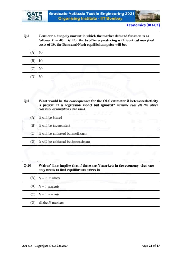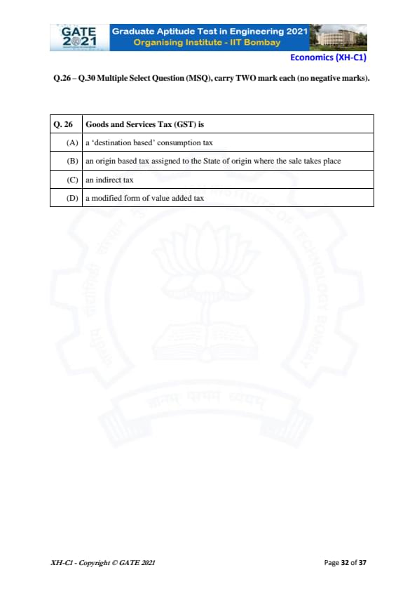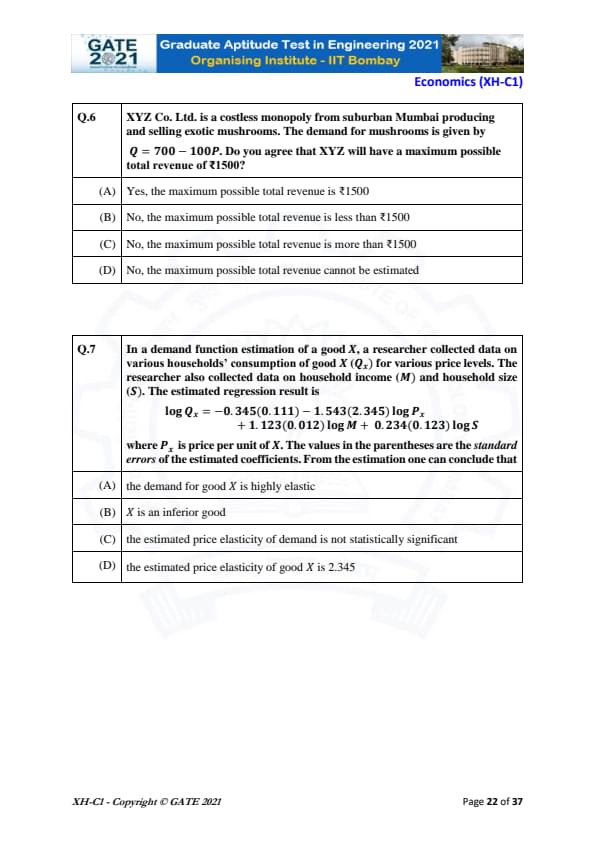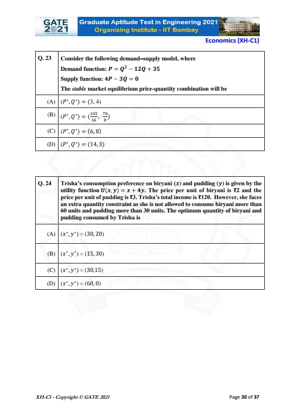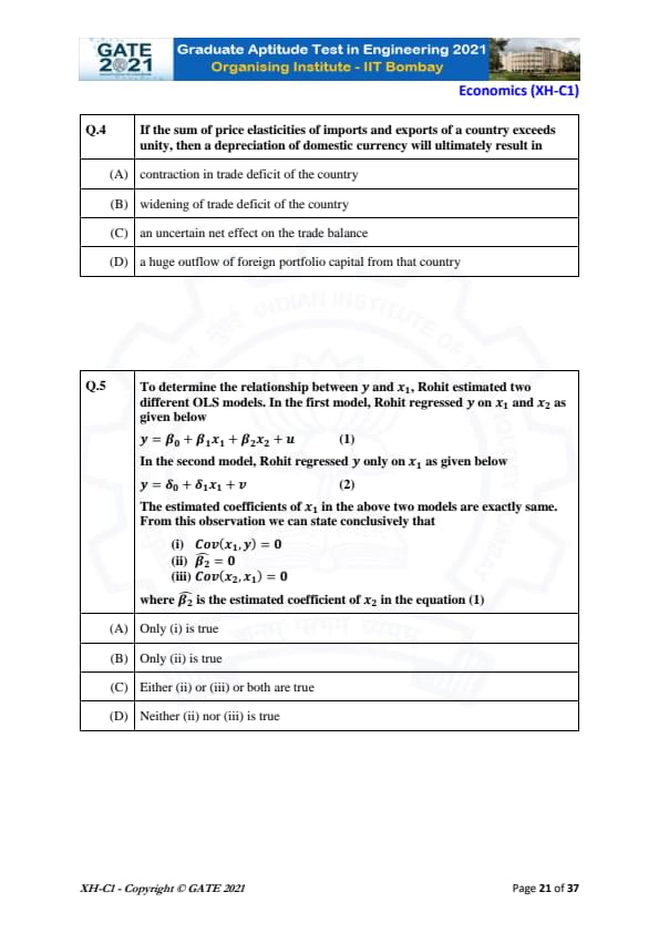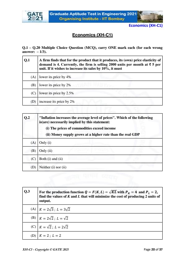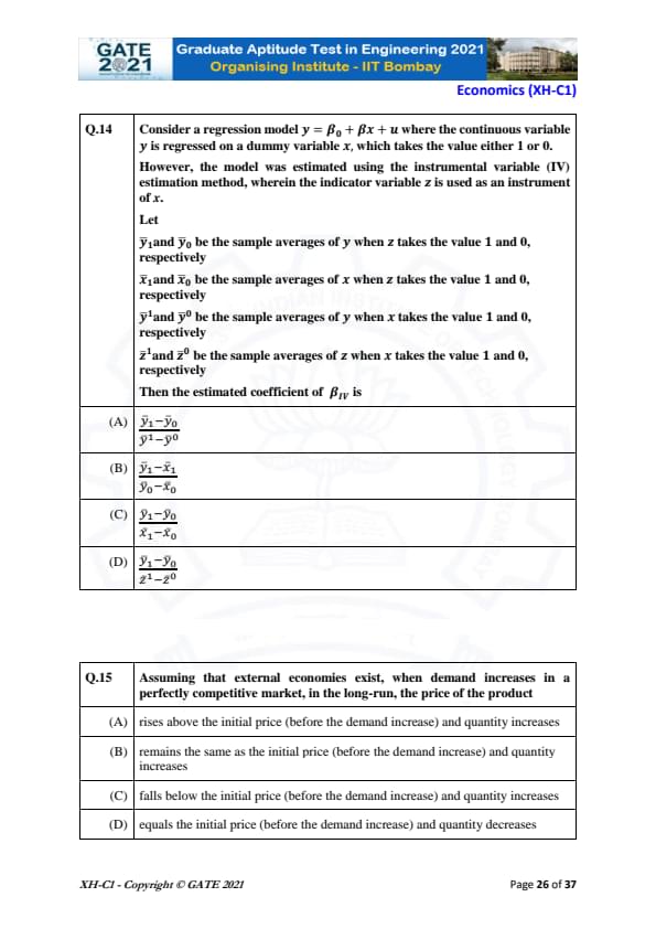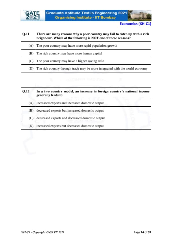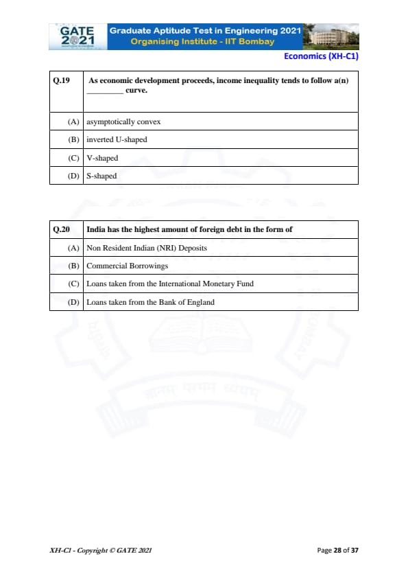 | GATE 2021 Humanities and Social Sciences (XH), Economics (XH-C1) Question Paper | Check Solutions |